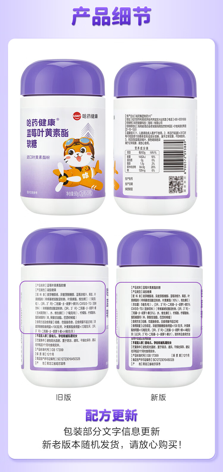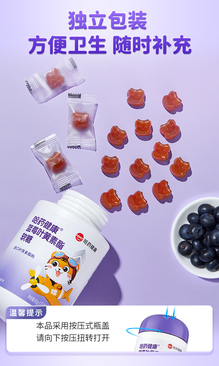 哈药 蓝莓叶黄素酯软糖 儿童进口叶黄素酯粉 含胡萝卜素 30粒*3瓶