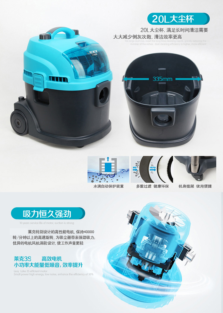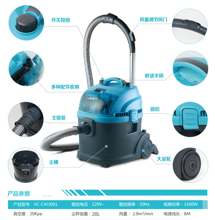 吉米(Jimmy)吸尘器莱克工业桶式干湿两用工厂车间商用酒店宾馆1500W大功率强劲吸力吸尘机CW3001