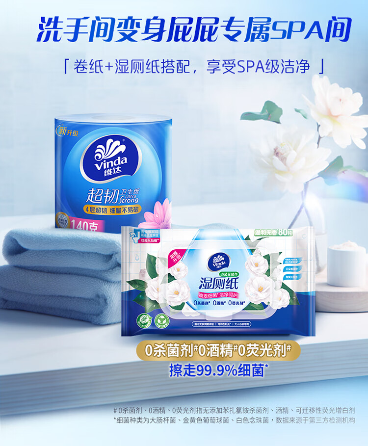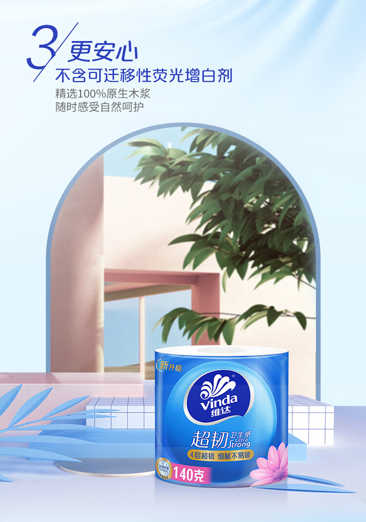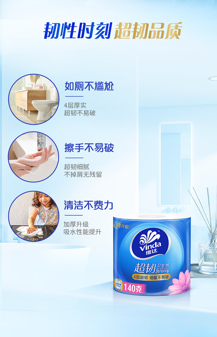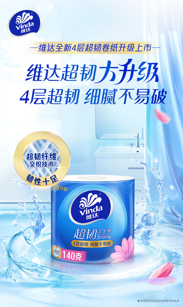 维达(Vinda)有芯卷纸 超韧4层140克*30卷 加厚升级 卫生纸卷筒纸手纸纸巾整箱
