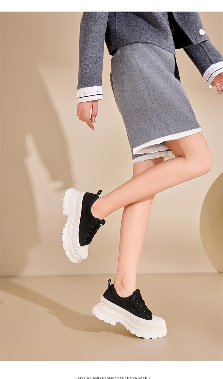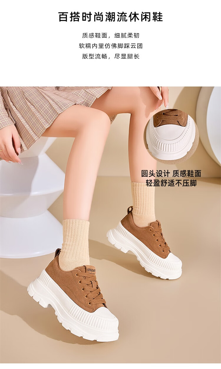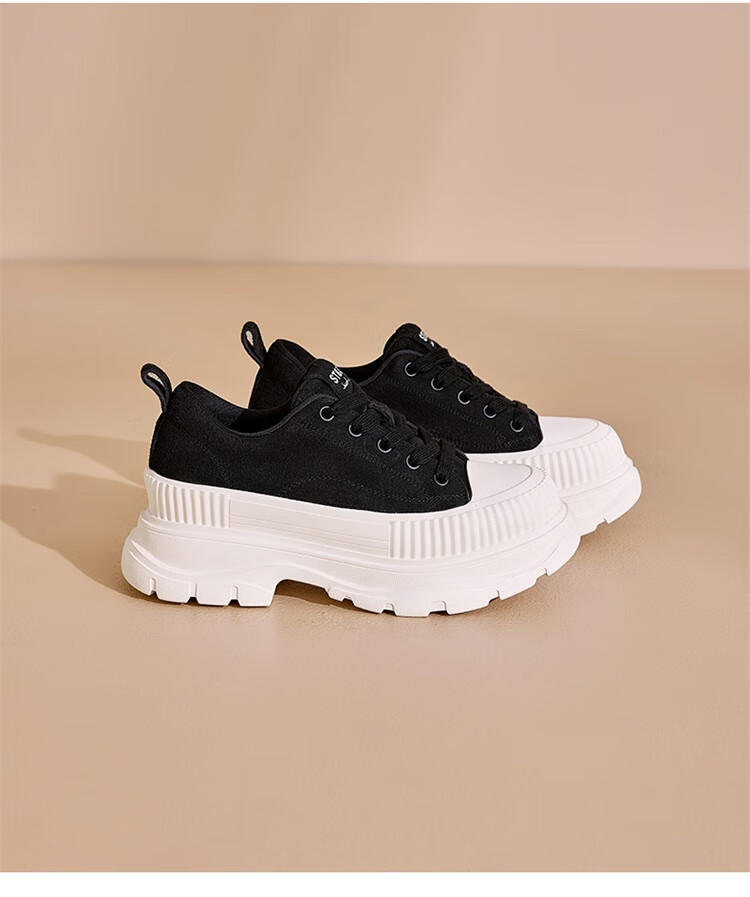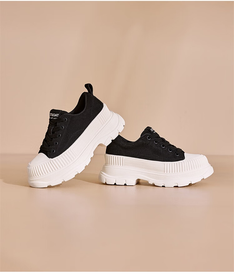 星期六松糕厚底小白鞋2025秋季新款百搭爆款老爹鞋休闲运动鞋女鞋 黑色 35