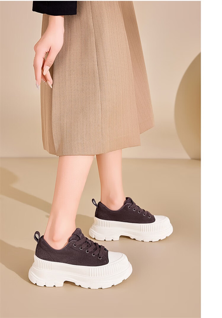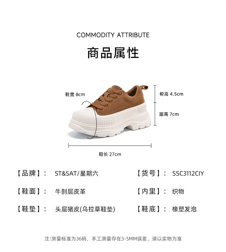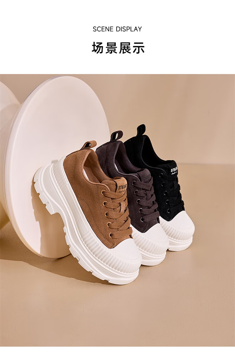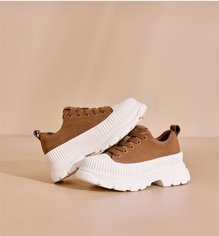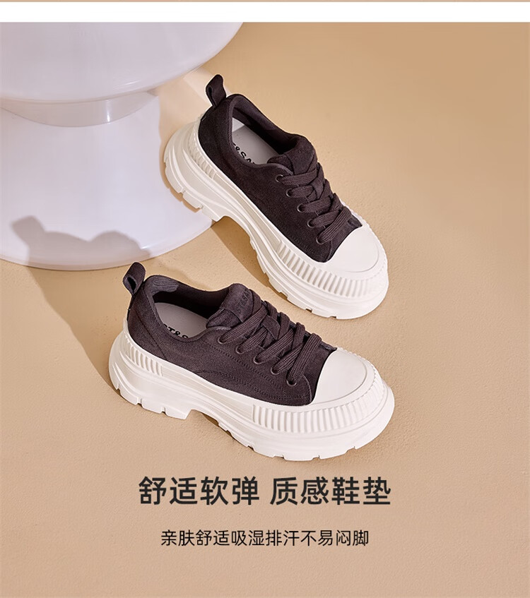 星期六松糕厚底小白鞋2025秋季新款百搭爆款老爹鞋休闲运动鞋女鞋 黑色 35