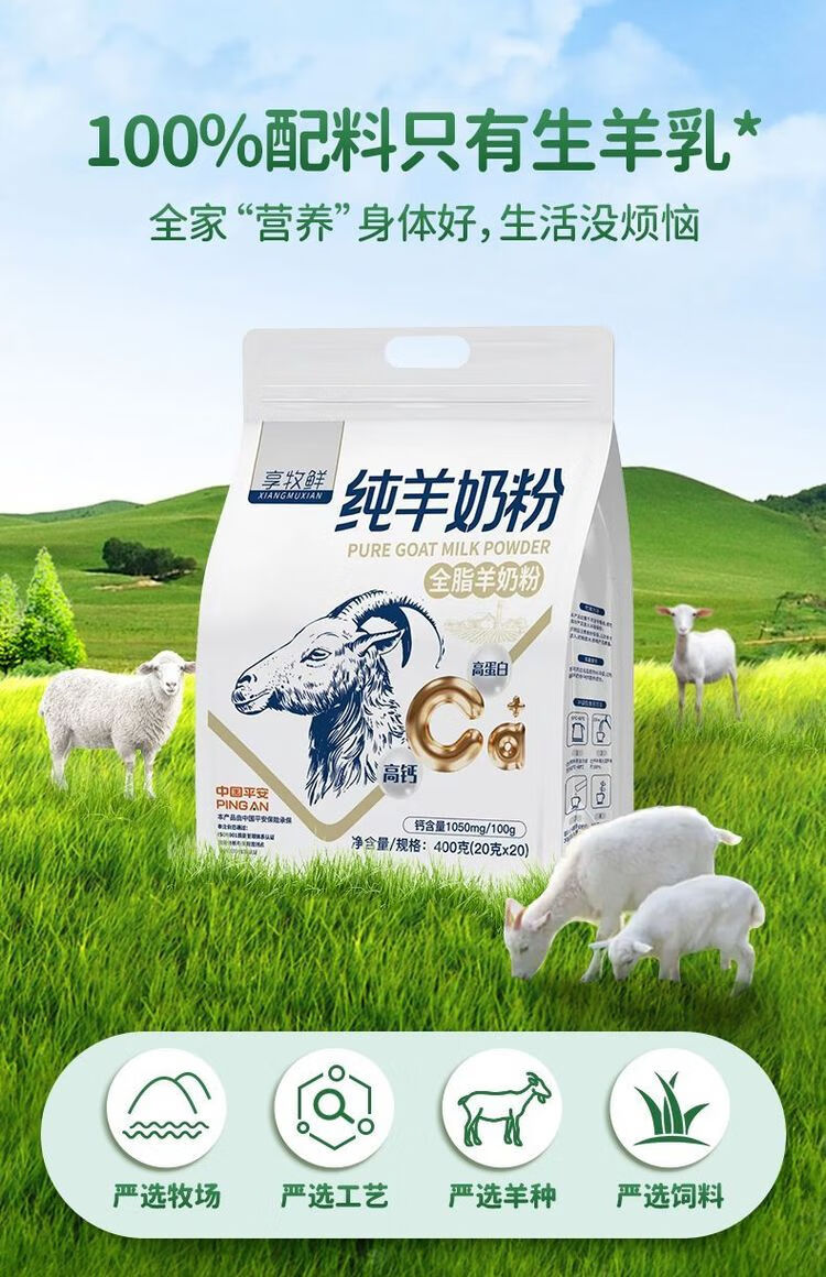 享牧鲜纯羊奶粉400g青年儿童女士中老年无蔗糖全脂羊奶20g*20条 袋装纯羊奶粉 400g*2袋装纯羊奶粉