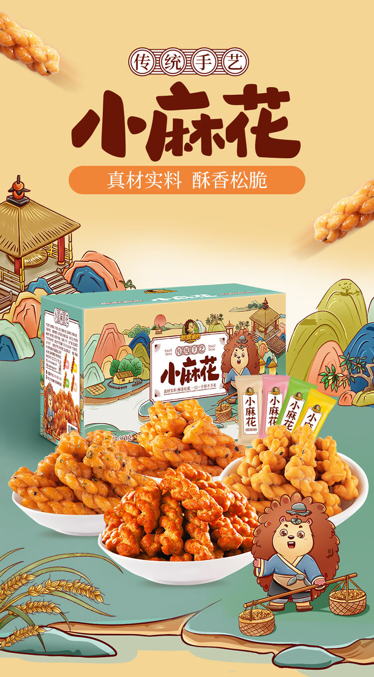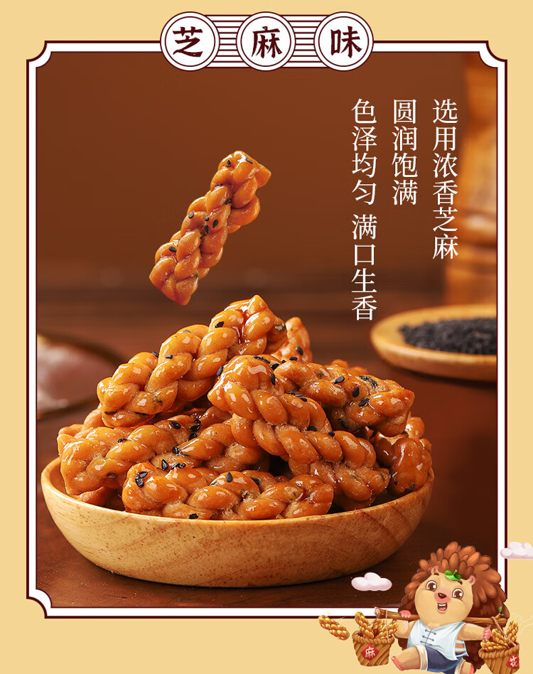 刺猬阿甘小麻花花椒味焦糖味芝麻香葱味儿童零食解馋食品糕点休闲独立包装 小麻花360g混合口味约100根