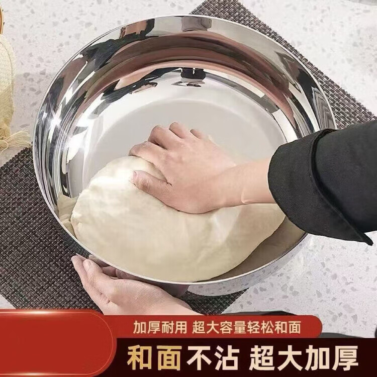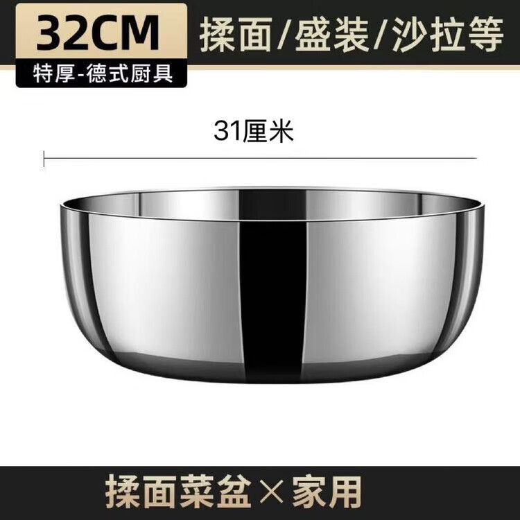 厨房烘焙特厚加厚不锈钢和面盆厨房家用火锅盆洗菜打蛋汤锅盆 【加厚款】不锈钢和面盆32cm