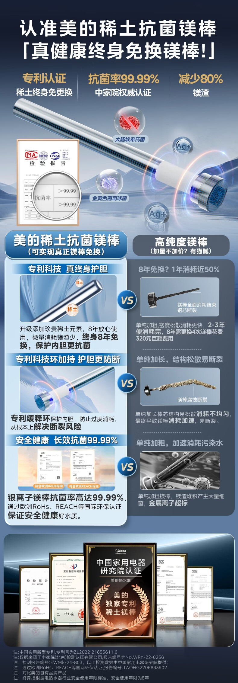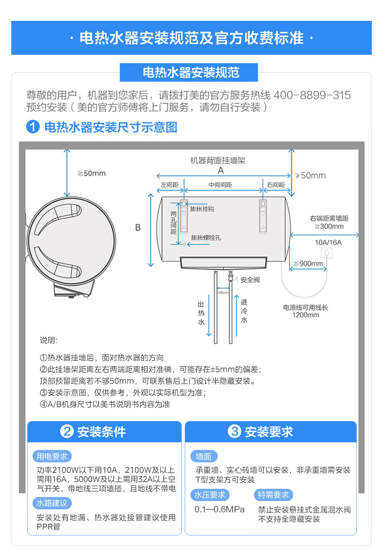 美的(Midea)国家补贴15%终身免换镁棒60升电热水器3300W变频省电一级能效节能安全水电分离F6033-JE6(HE)