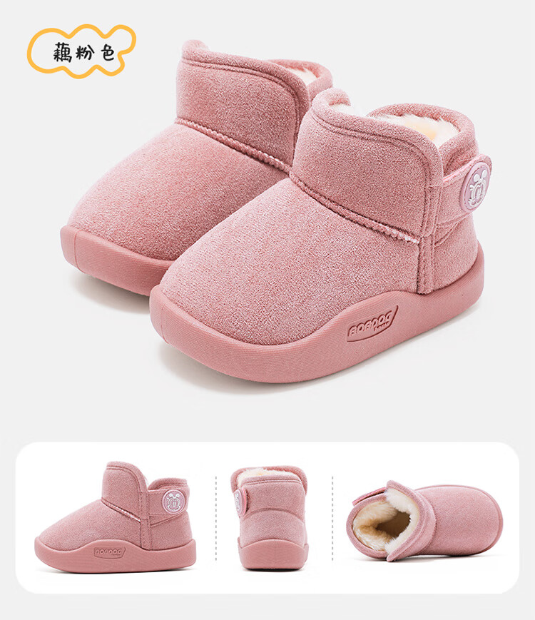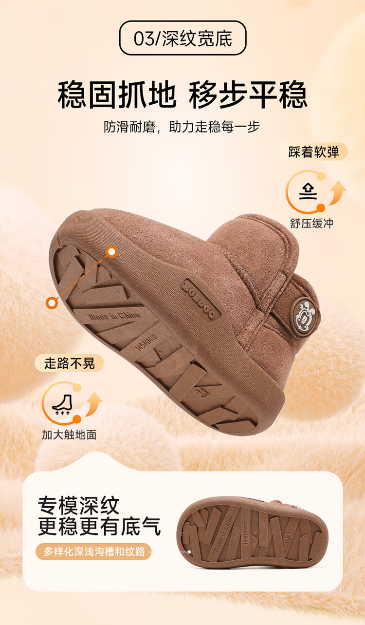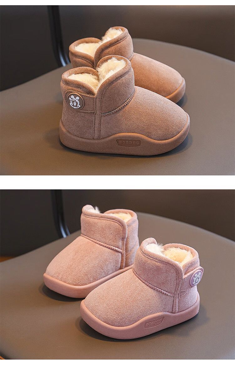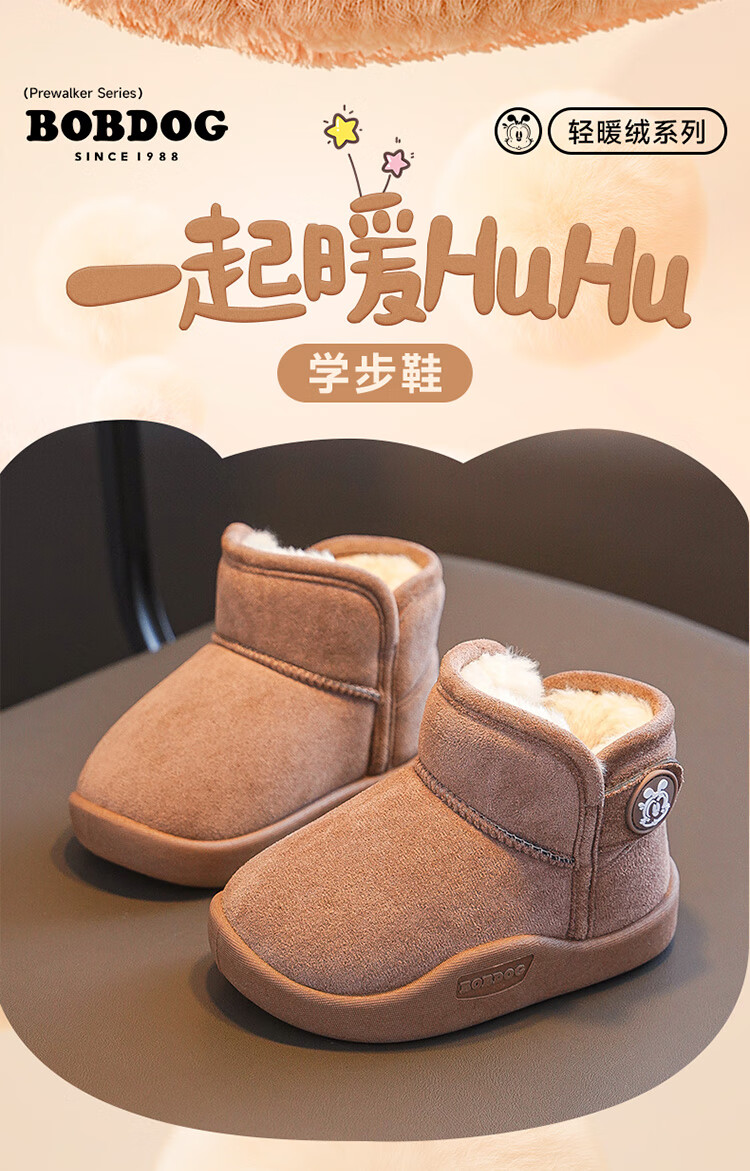 巴布豆童鞋女宝宝冬季加绒雪地靴子新款小童学步鞋男童轻便保暖二棉 咖啡棕 22 适合脚长13.0cm