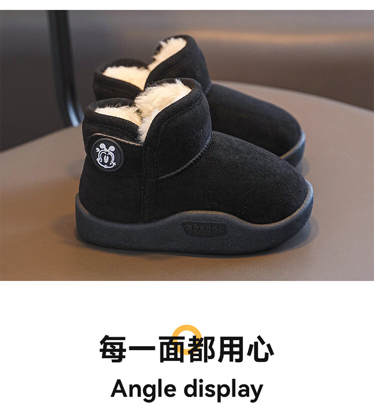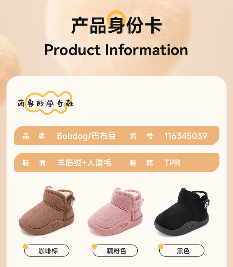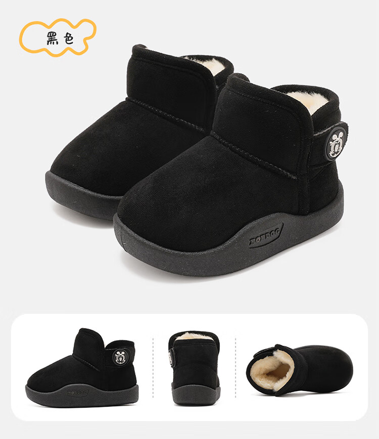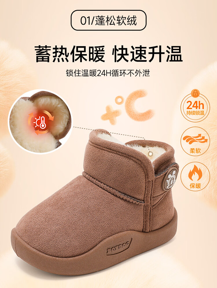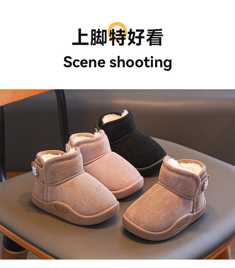 巴布豆童鞋女宝宝冬季加绒雪地靴子新款小童学步鞋男童轻便保暖二棉 咖啡棕 22 适合脚长13.0cm