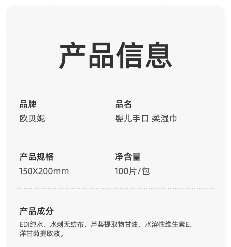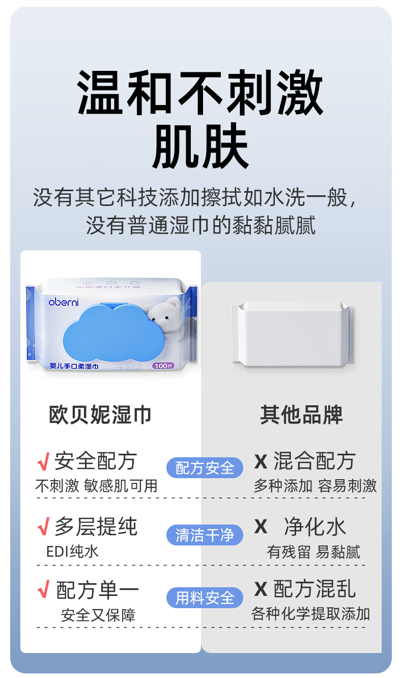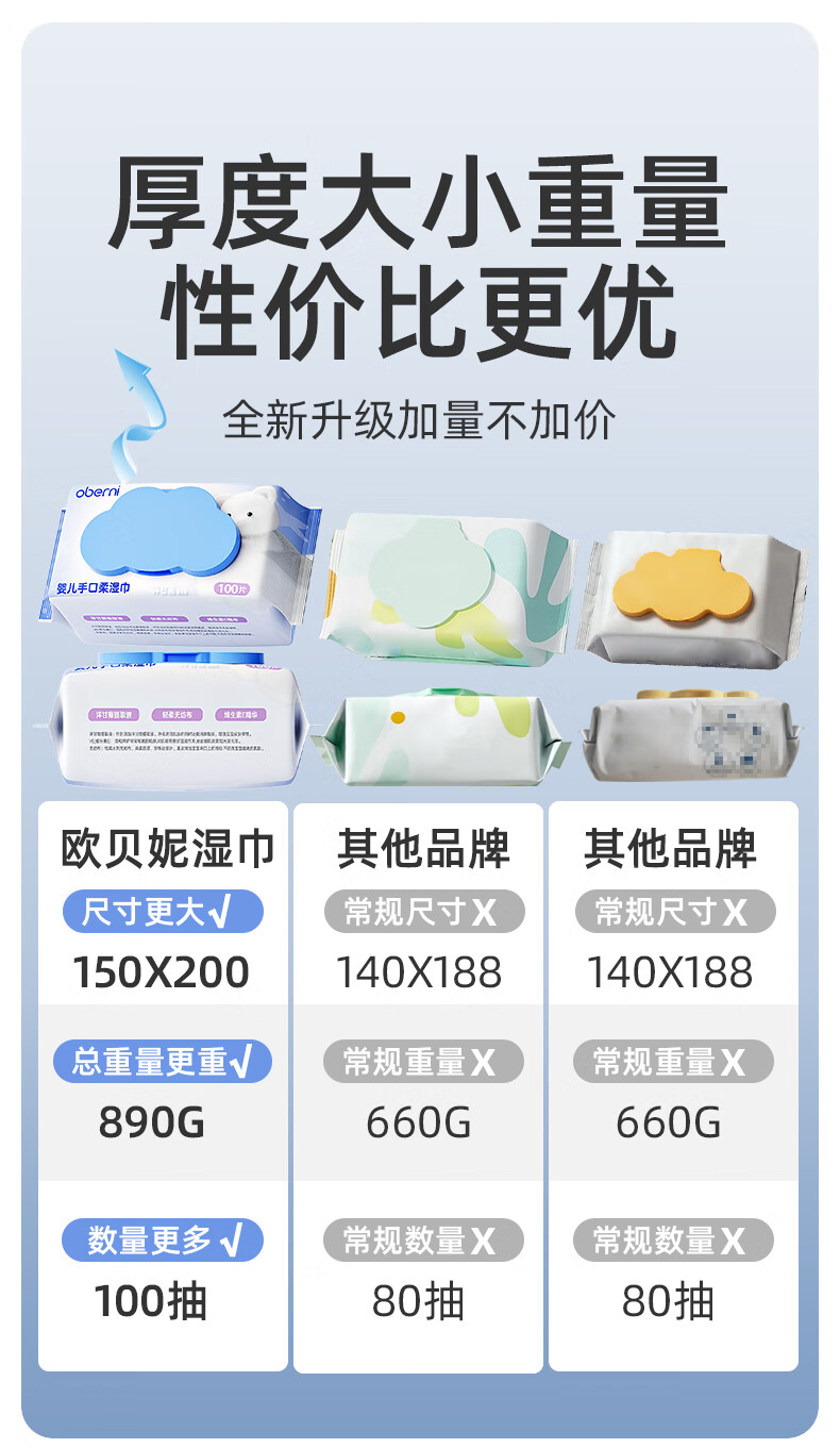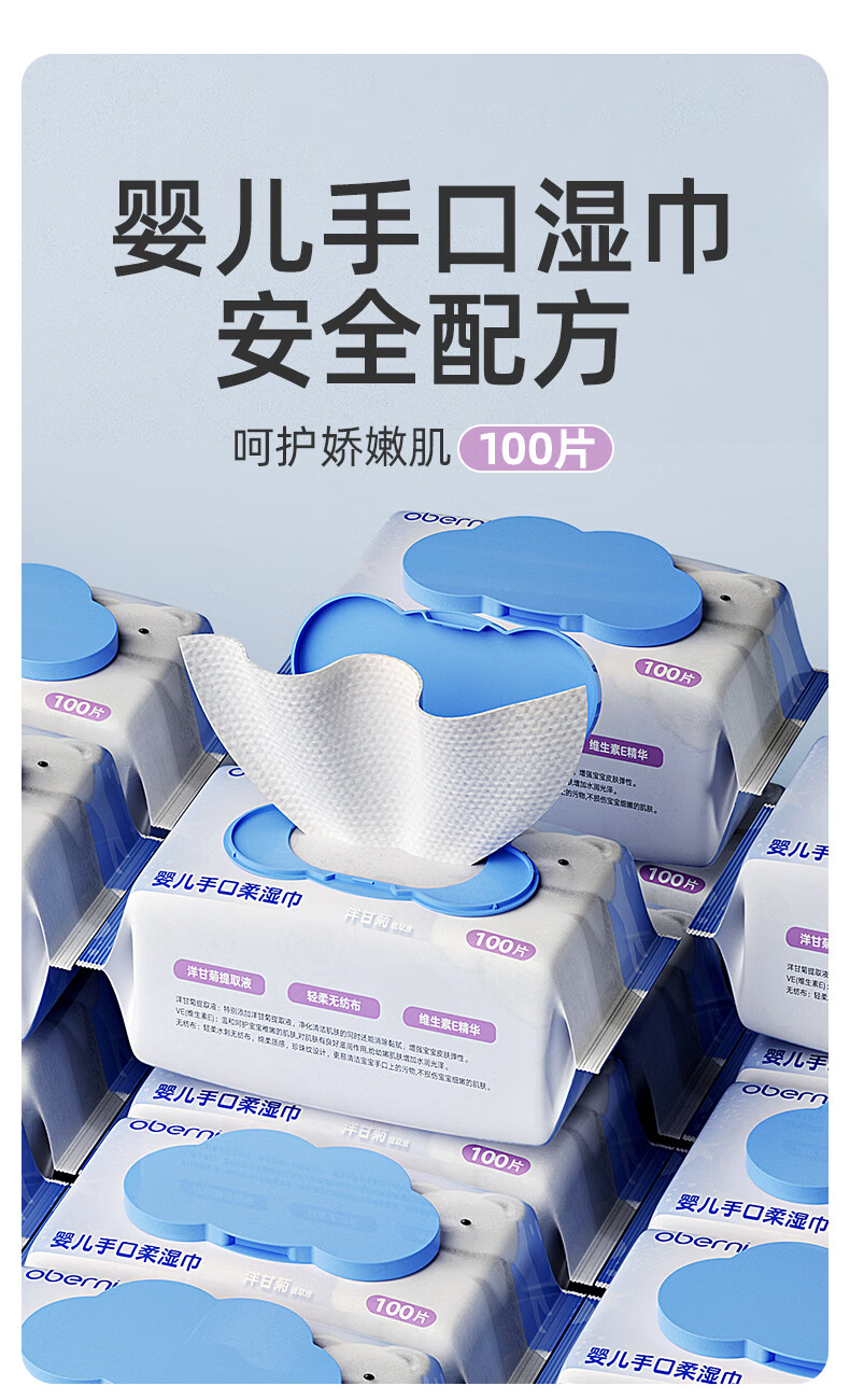 欧贝妮婴儿湿巾儿童手口专用宝宝湿巾纸家庭实惠装加厚加大100抽 (家庭囤货装)加大加厚 100抽 6包