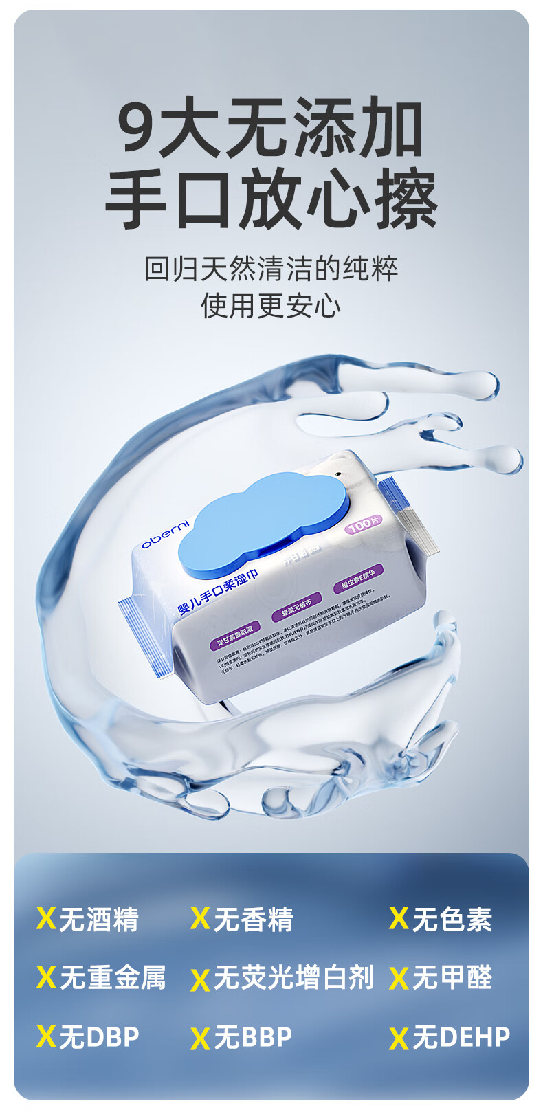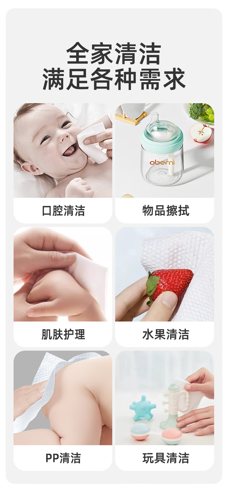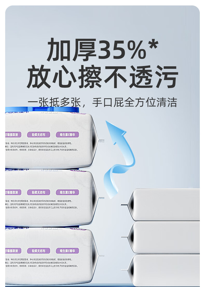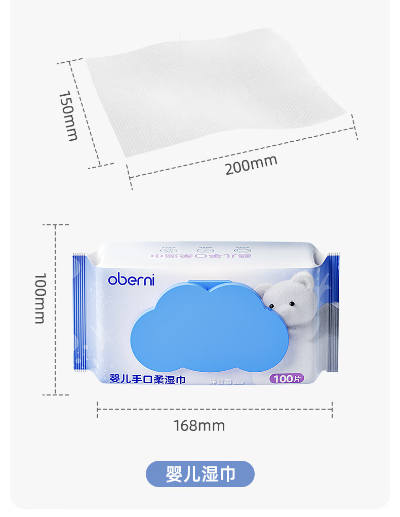欧贝妮婴儿湿巾儿童手口专用宝宝湿巾纸家庭实惠装加厚加大100抽 (家庭囤货装)加大加厚 100抽 6包