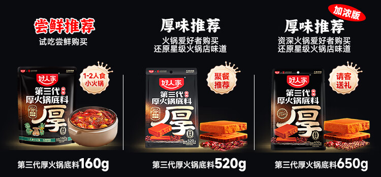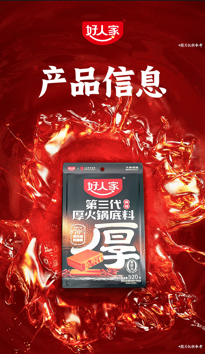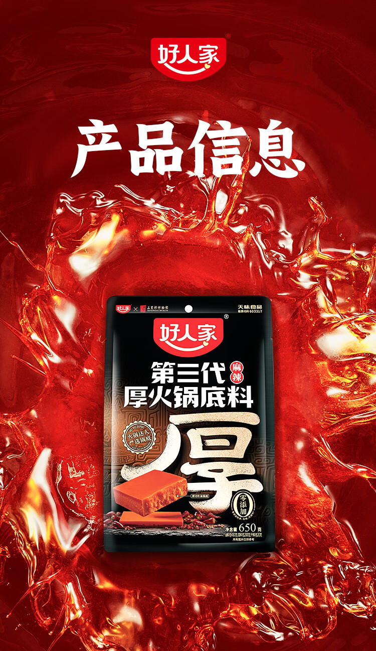 好人家第三代火锅底料厚切牛油家庭聚会送礼调料 厚火锅底料特麻辣500g