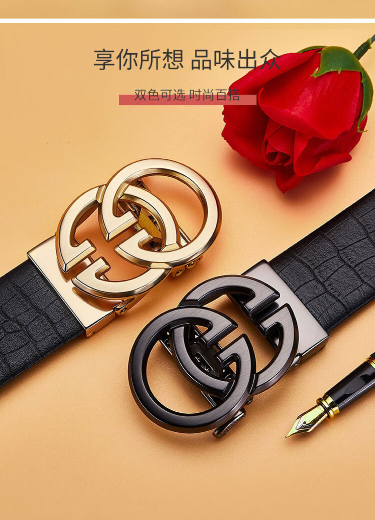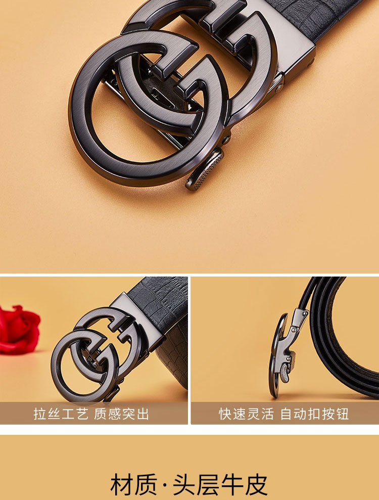 英伦保罗皮带男真皮自动扣头层牛皮男士腰带商务简约裤带生日礼物男送男友 枪色-头层牛皮