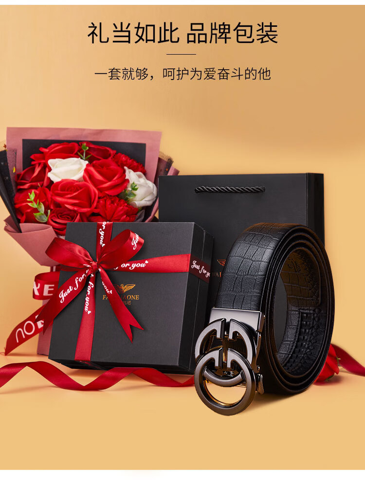 FALAMAONE皮带男真皮2025新款男士腰带商务休闲自动扣牛皮裤腰带男生日礼物 京仓直发/枪色鳄鱼纹【专柜礼盒】 120cm 改尺寸联系客服或下单备注