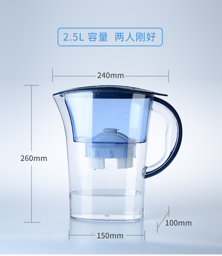 添丽【精选现发】净水器家用活性炭过滤冷水壶净水壶厨房净 2.5L 深蓝色一壶一芯