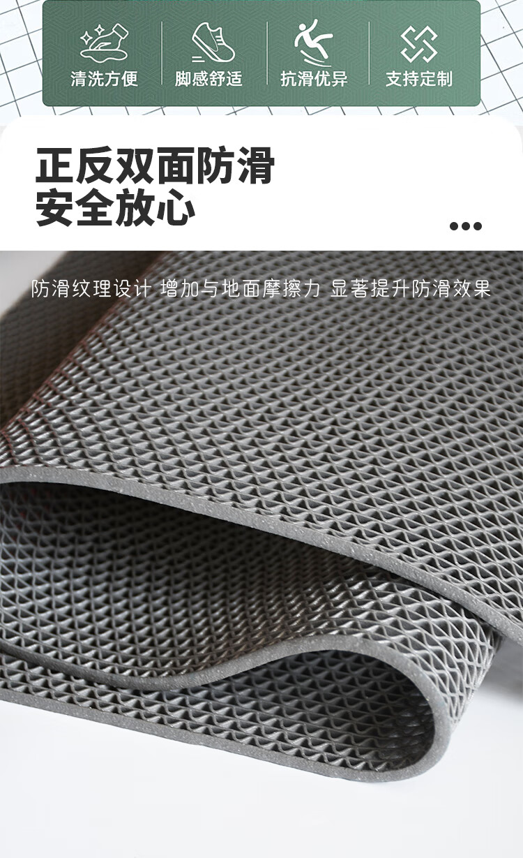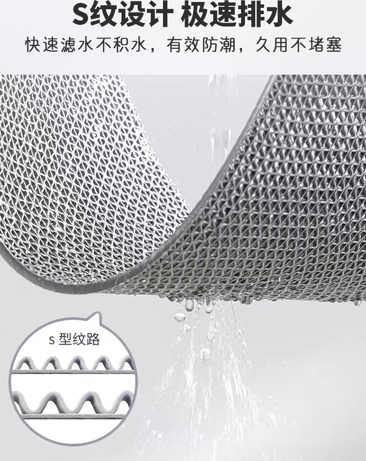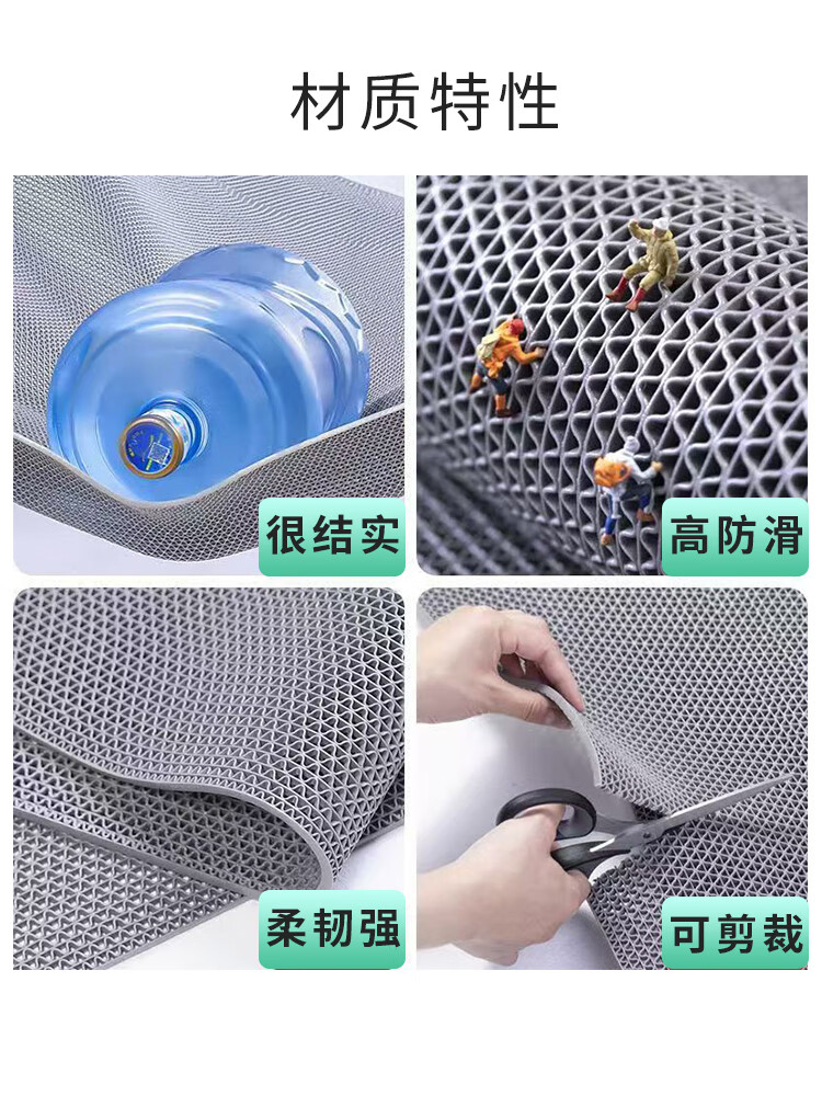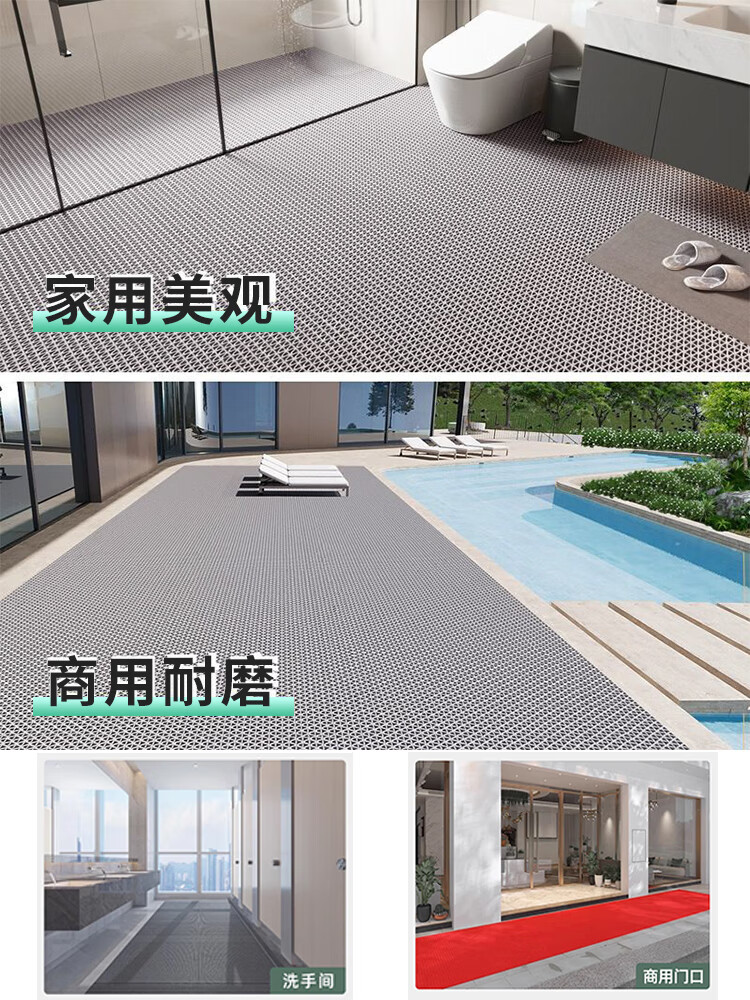 品歌浴室防滑垫厨房卫生间淋浴脚垫商用泳池厕所防摔镂空可裁剪地垫 【灰色】4.5mm 90*60cm【可定制尺寸】