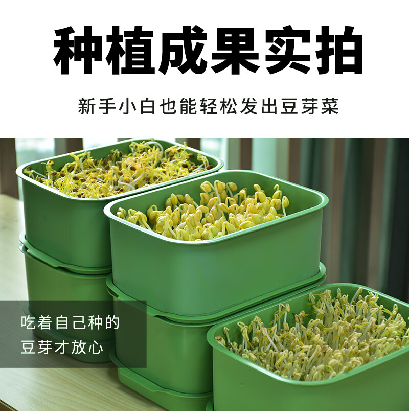 伟照业豆芽发芽盆家用自制豆芽机发豆芽花生芽专用盆黄豆绿豆发芽神器 【升级款】加厚加大容量一套