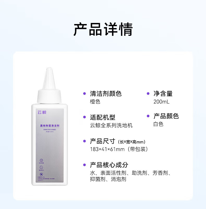 云鲸(NARWAL)【适用S3Island/S2Island/S2】云鲸智能洗地机配件高效抑菌清洁剂200ml