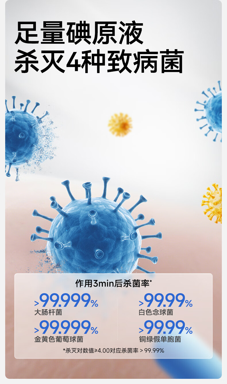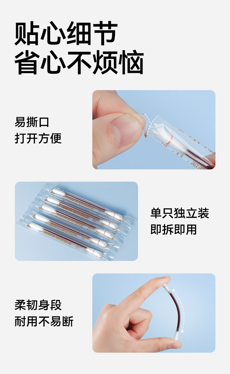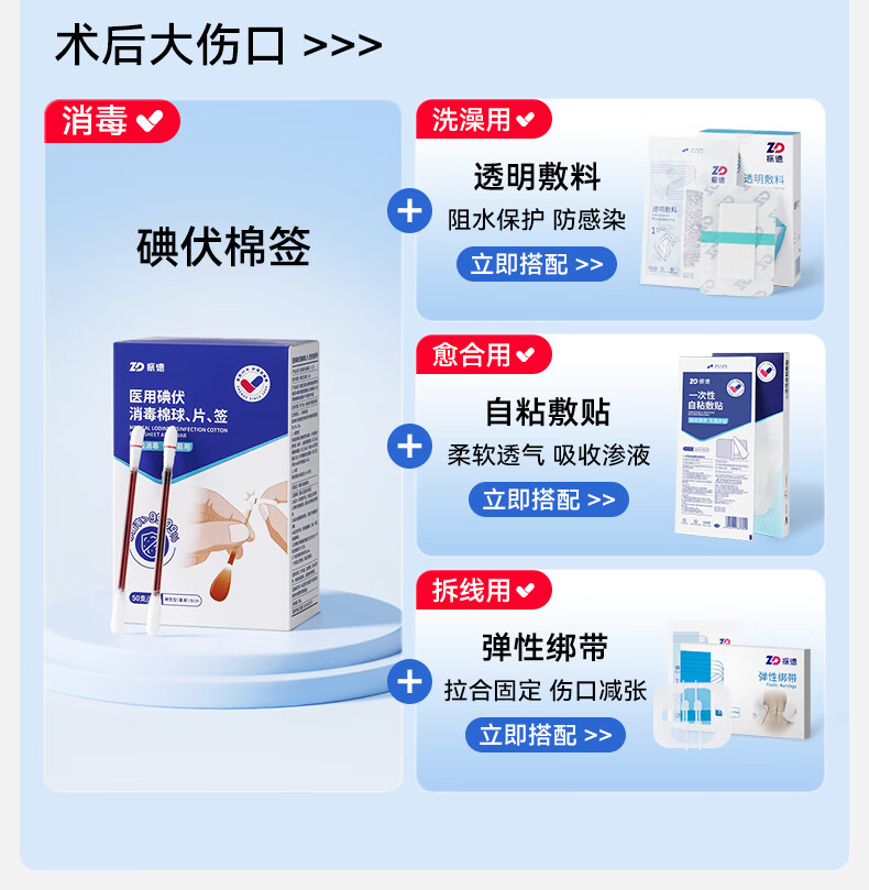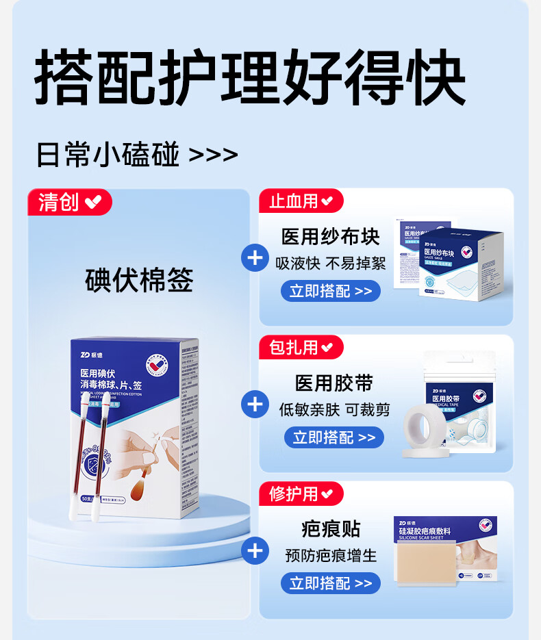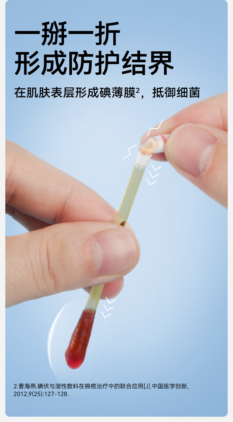 振德医用碘伏消毒液棉签50支 独立装碘伏棉棒伤口清洁棉棒成人婴儿
