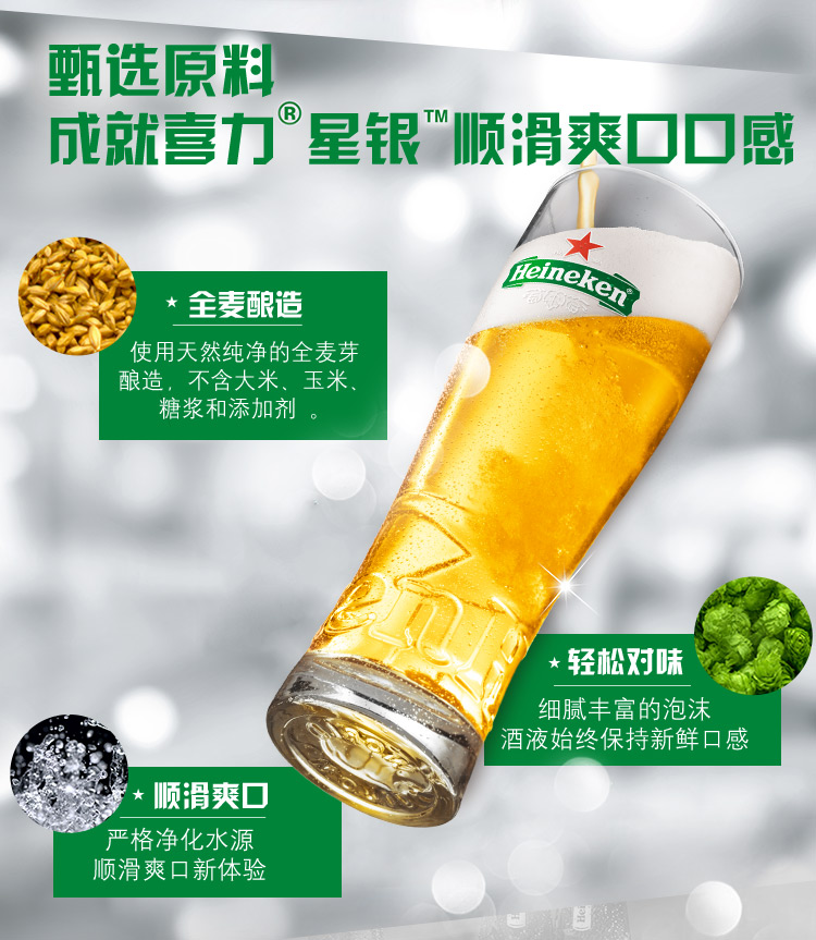 喜力经典500ml*3听 喜力啤酒Heineken