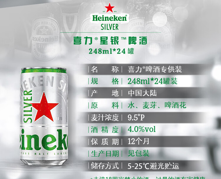 喜力经典(Heineken)啤酒330ml*24听整箱装荷兰原装进口啤酒元旦送礼