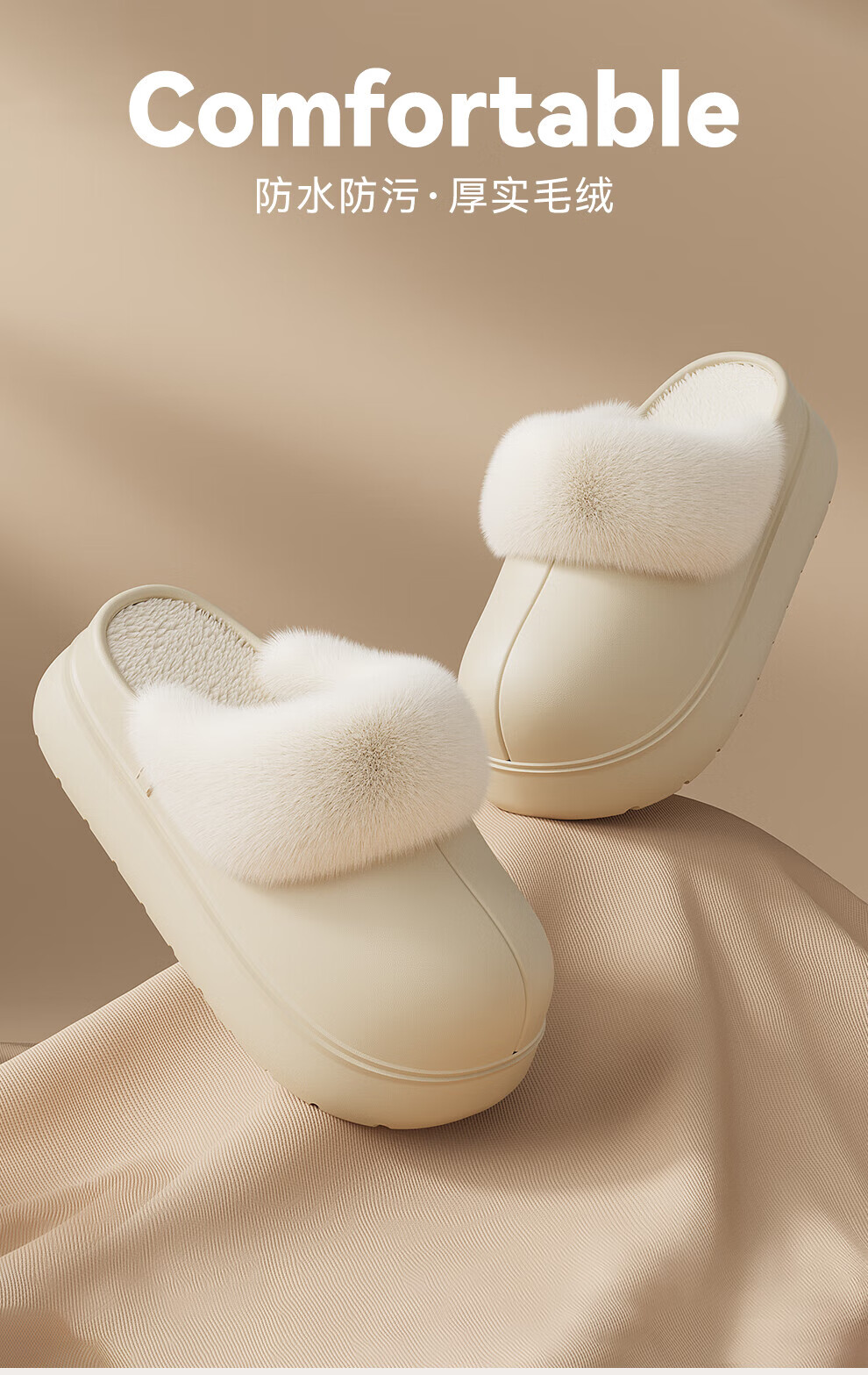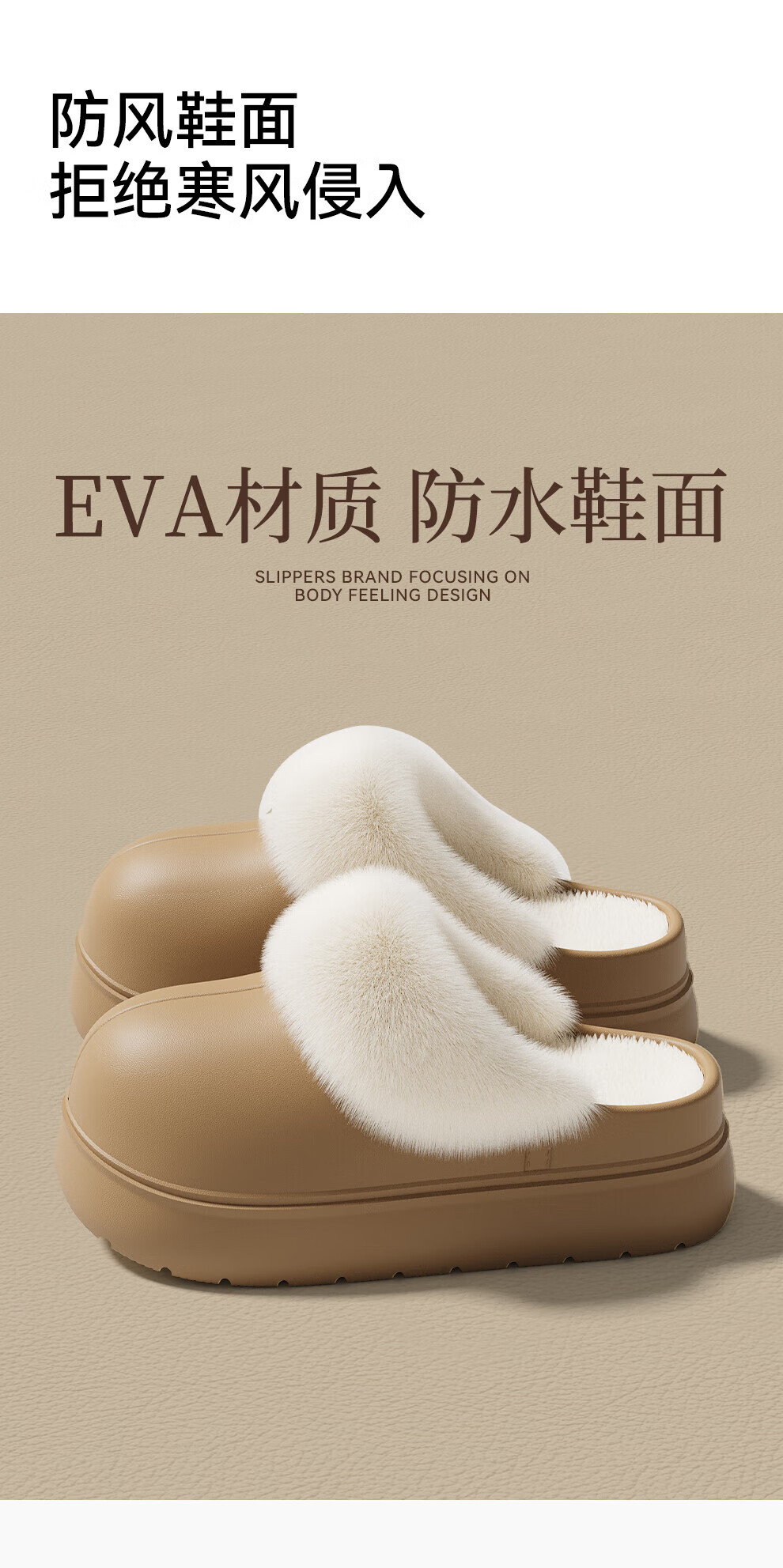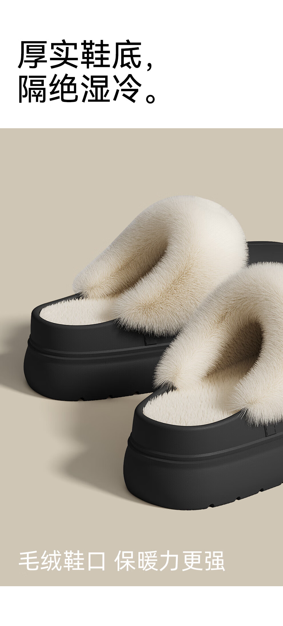 FZT厚底棉拖鞋女款秋冬季2025新款室内居家保暖防滑可拆卸防水棉拖鞋 黑色 36-37 适合35-36