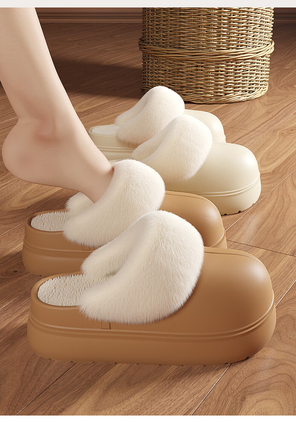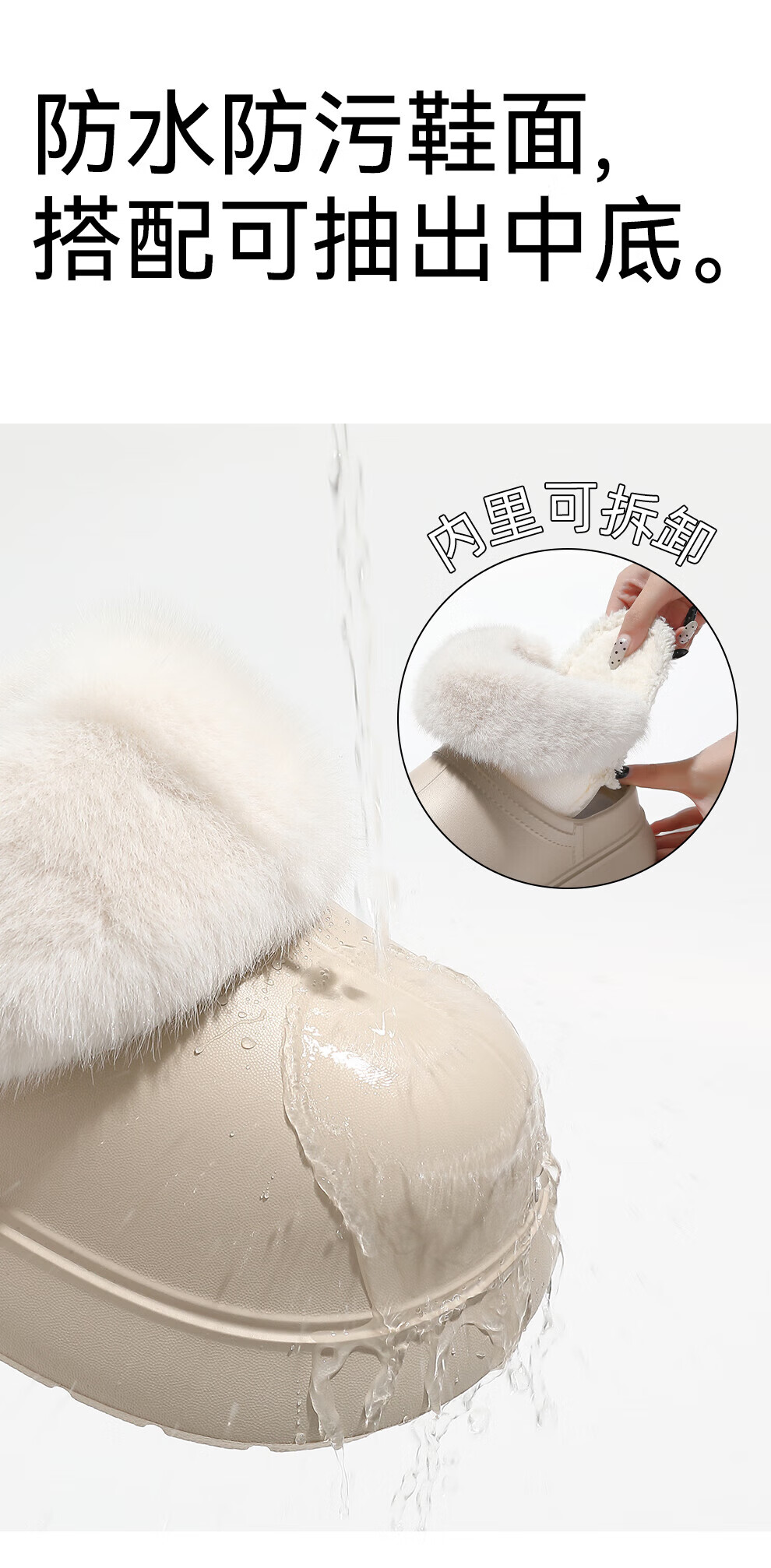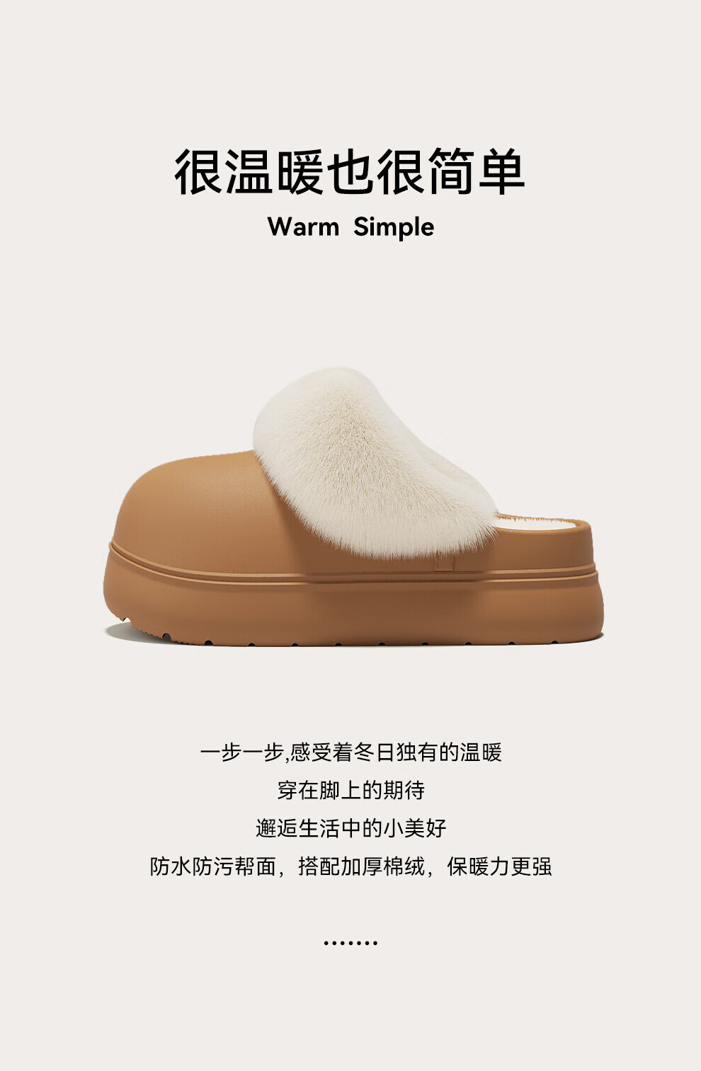 FZT厚底棉拖鞋女款秋冬季2025新款室内居家保暖防滑可拆卸防水棉拖鞋 黑色 36-37 适合35-36