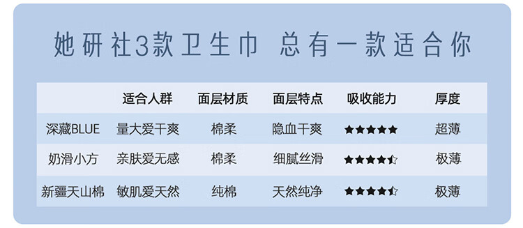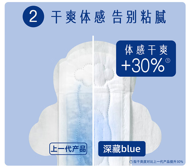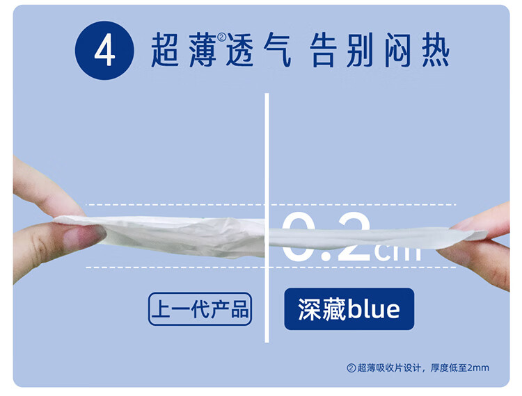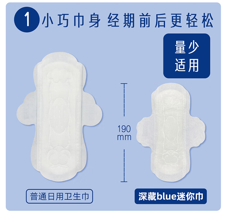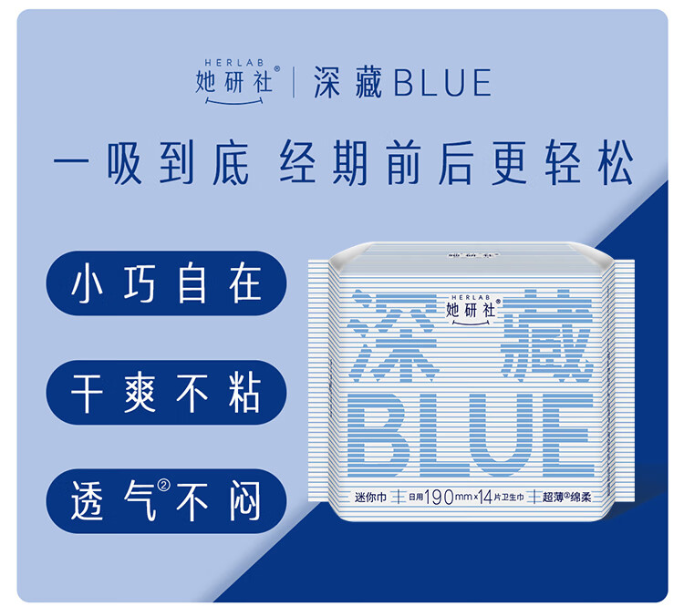 她研社日用卫生巾 深藏blue瞬间吸收量大不漏极薄透气迷你姨妈巾 2包 190mm 28片