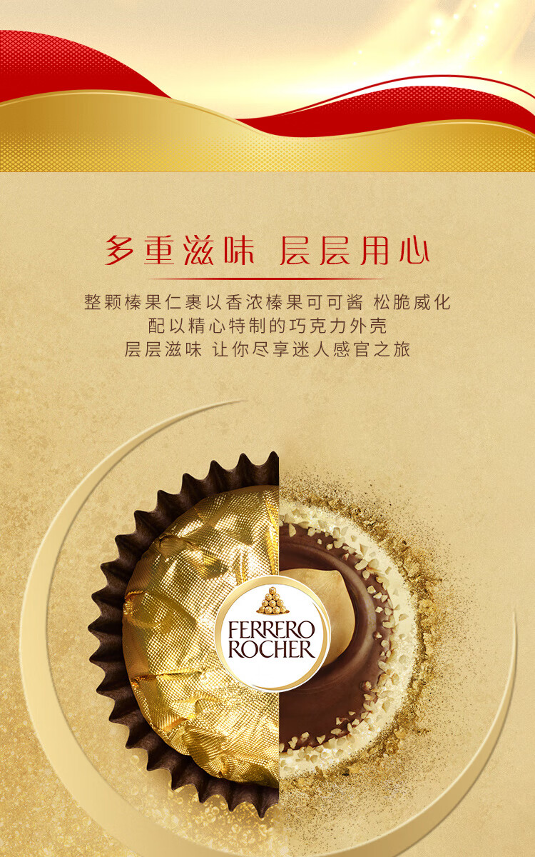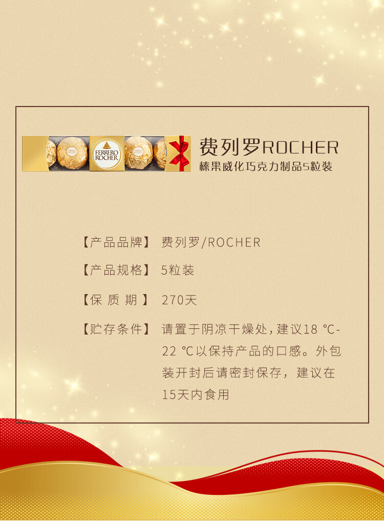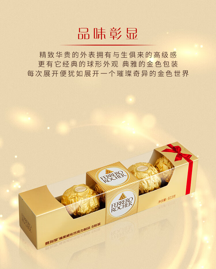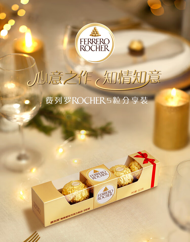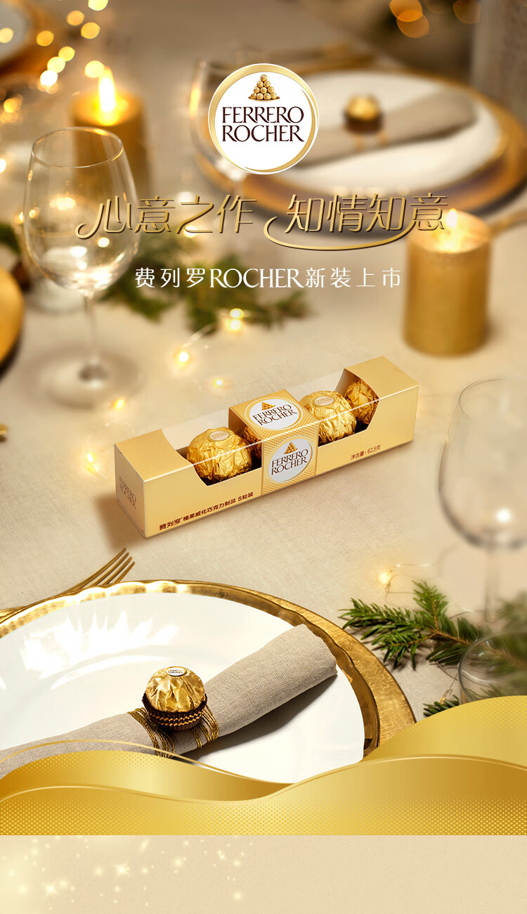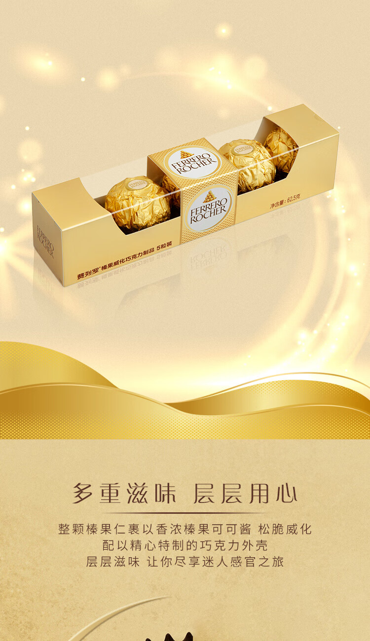 费列罗 巧克力 5粒62.5g 伴手礼 榛果威化 零食 糖果 新年礼物