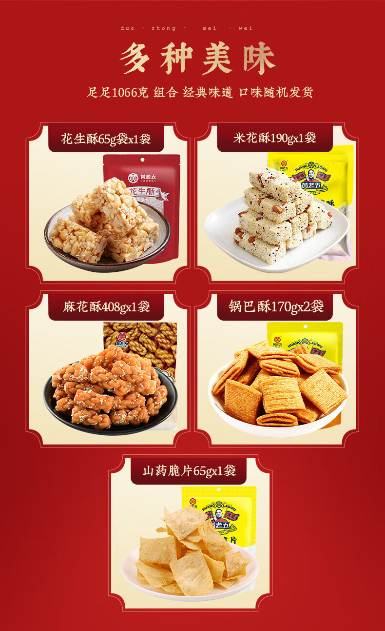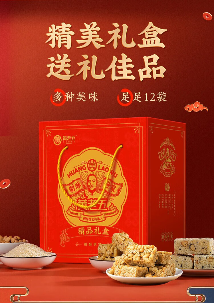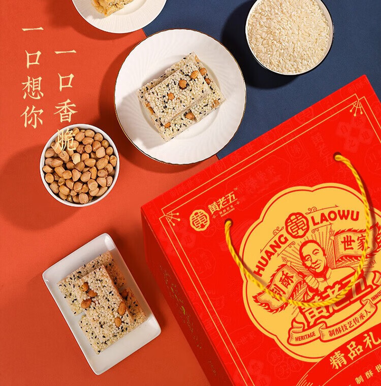 黄老五花生酥年货节礼盒四川特产传统中式糕点酥糖礼品礼包送长辈 【拍1发2盒】礼盒共1045g