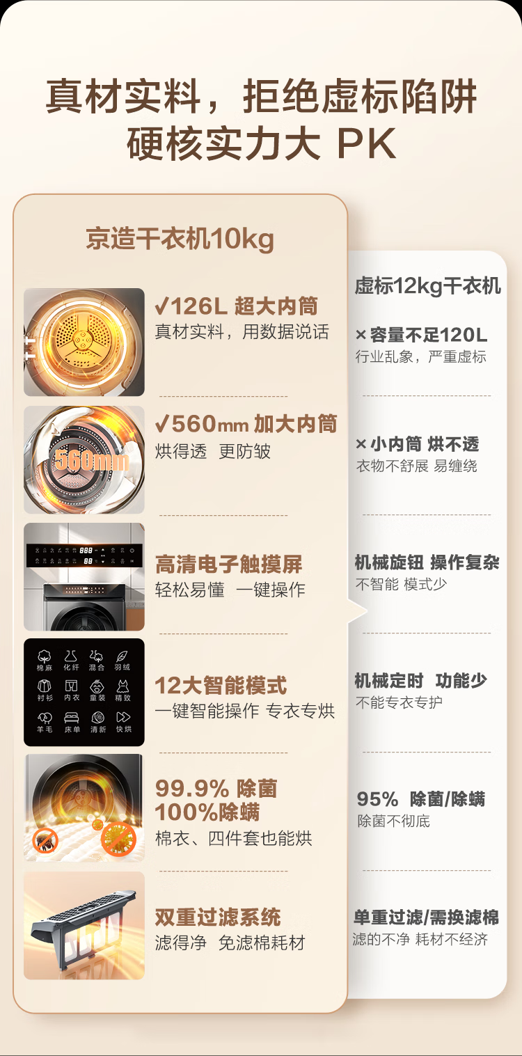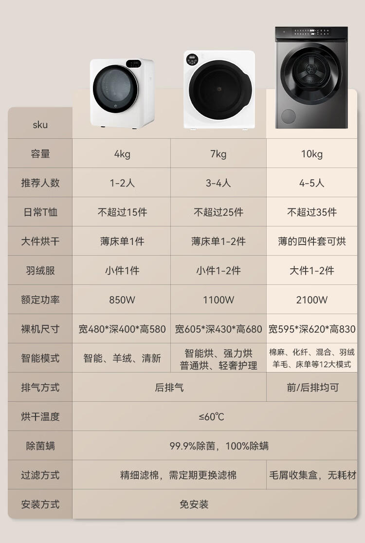 京东京造 烘干机 干衣机 10公斤家用直排式单独单烘干烘干机 烘衣服杀菌祛螨除潮 家电 JZHGJ-10B