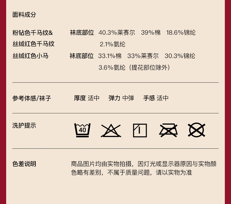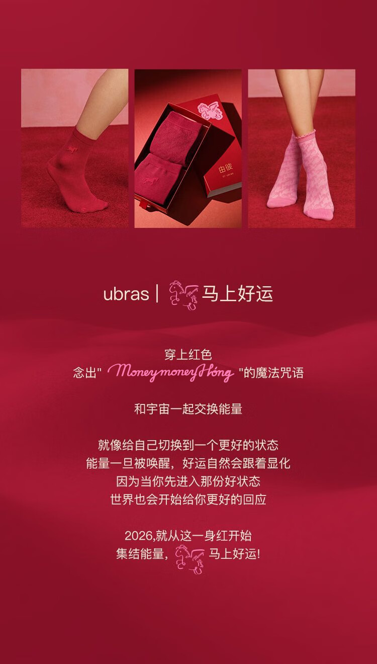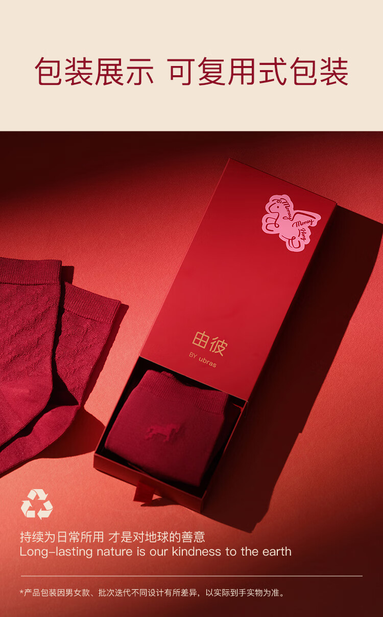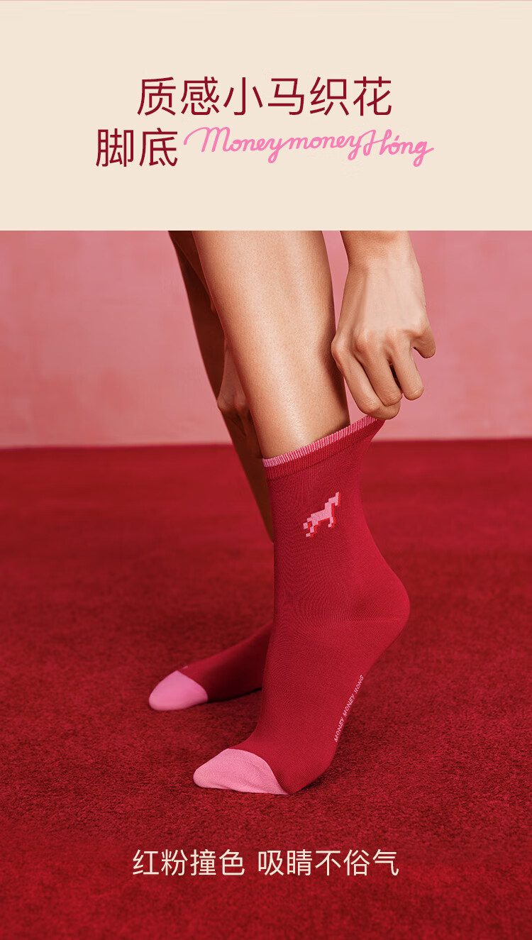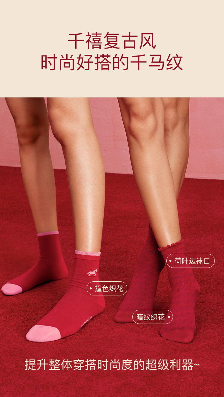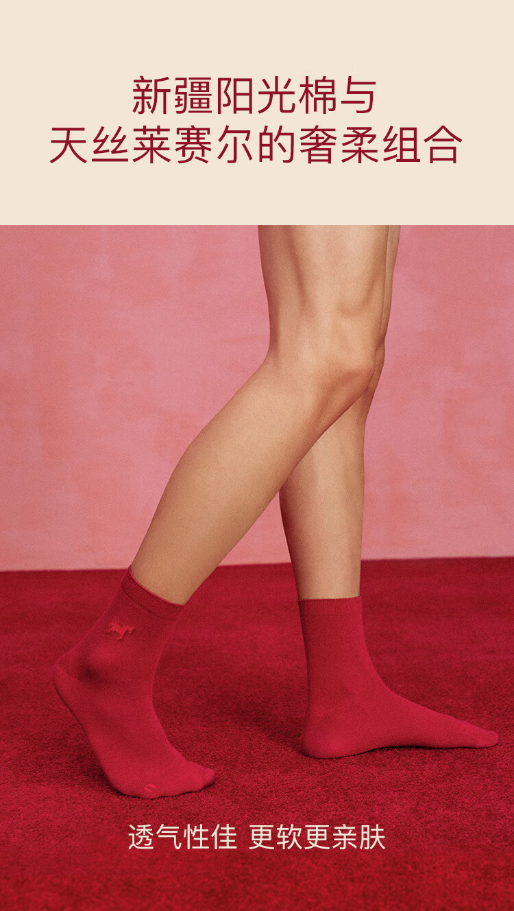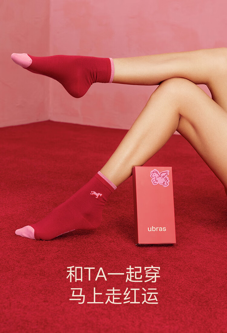 ubras25年新款红系列-新疆棉莱赛尔千马纹马上红女士中筒袜礼盒两双装