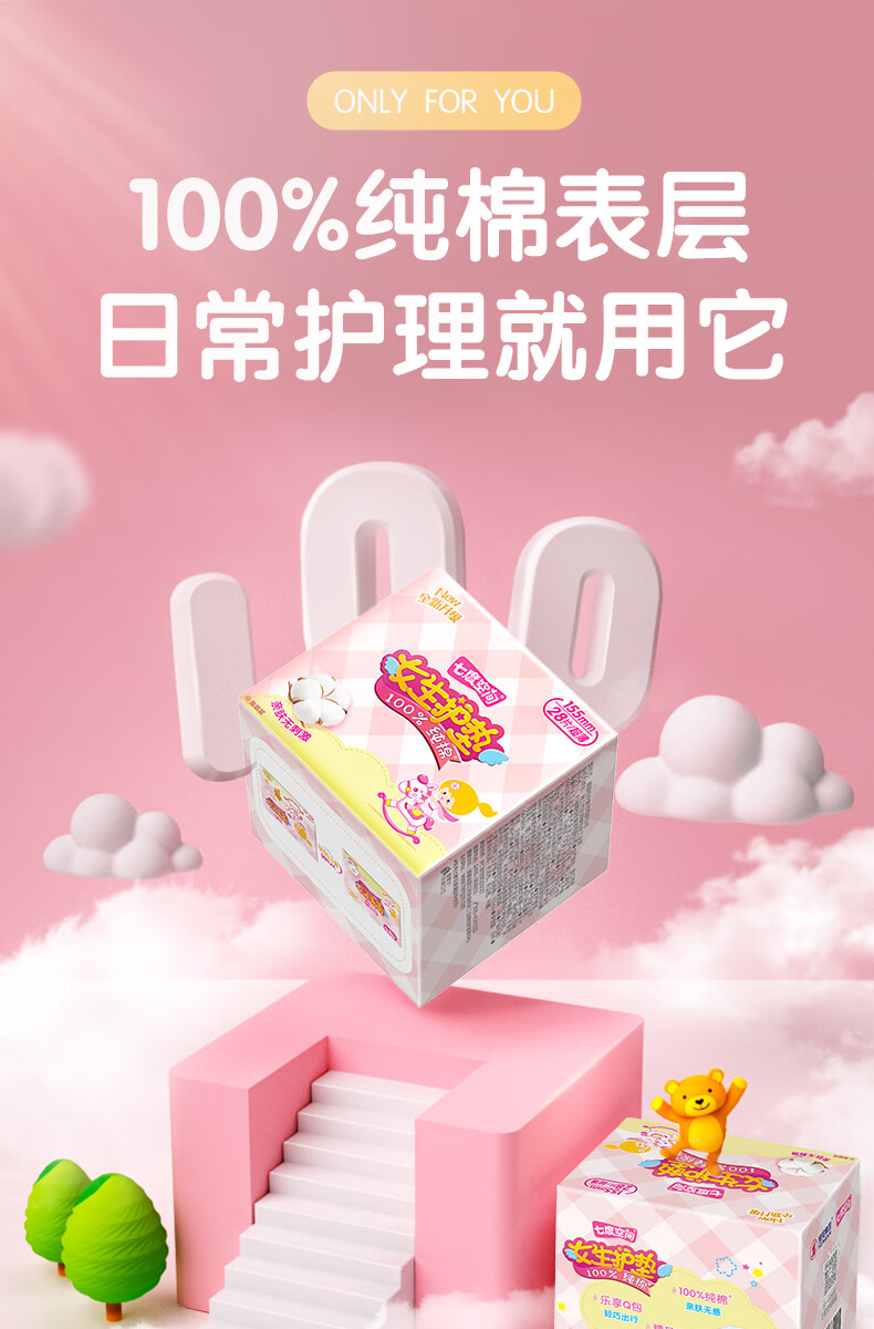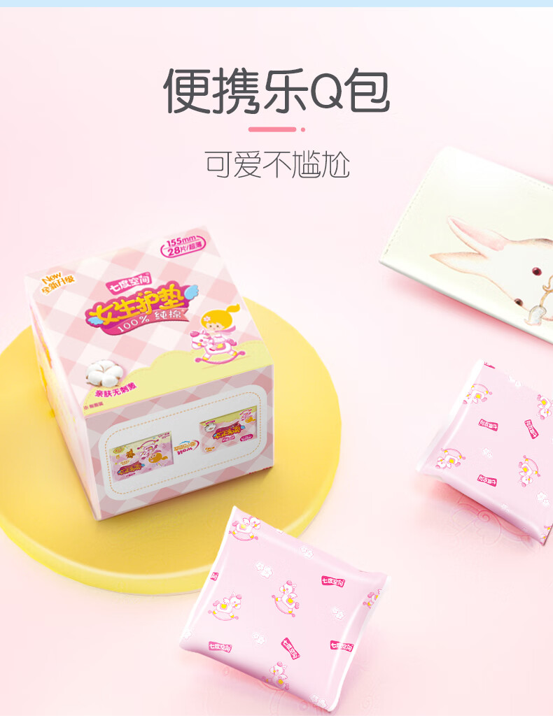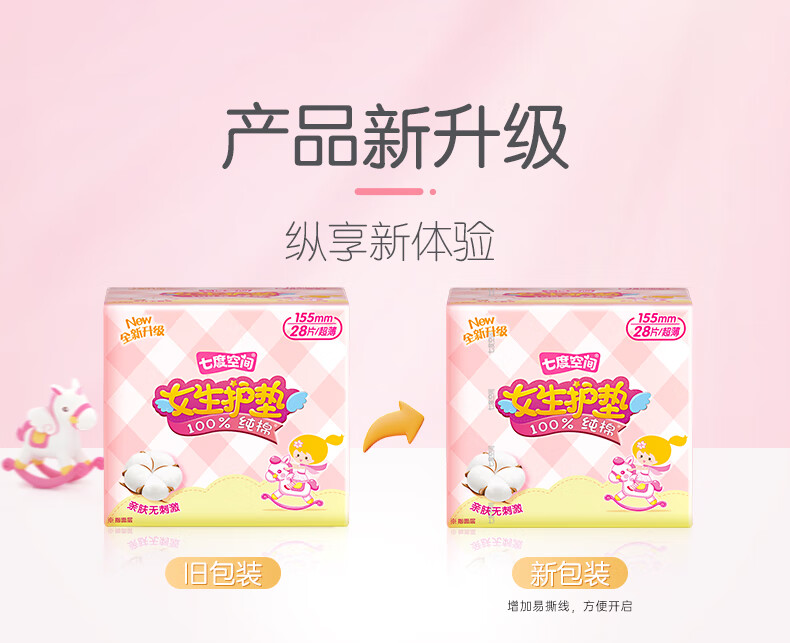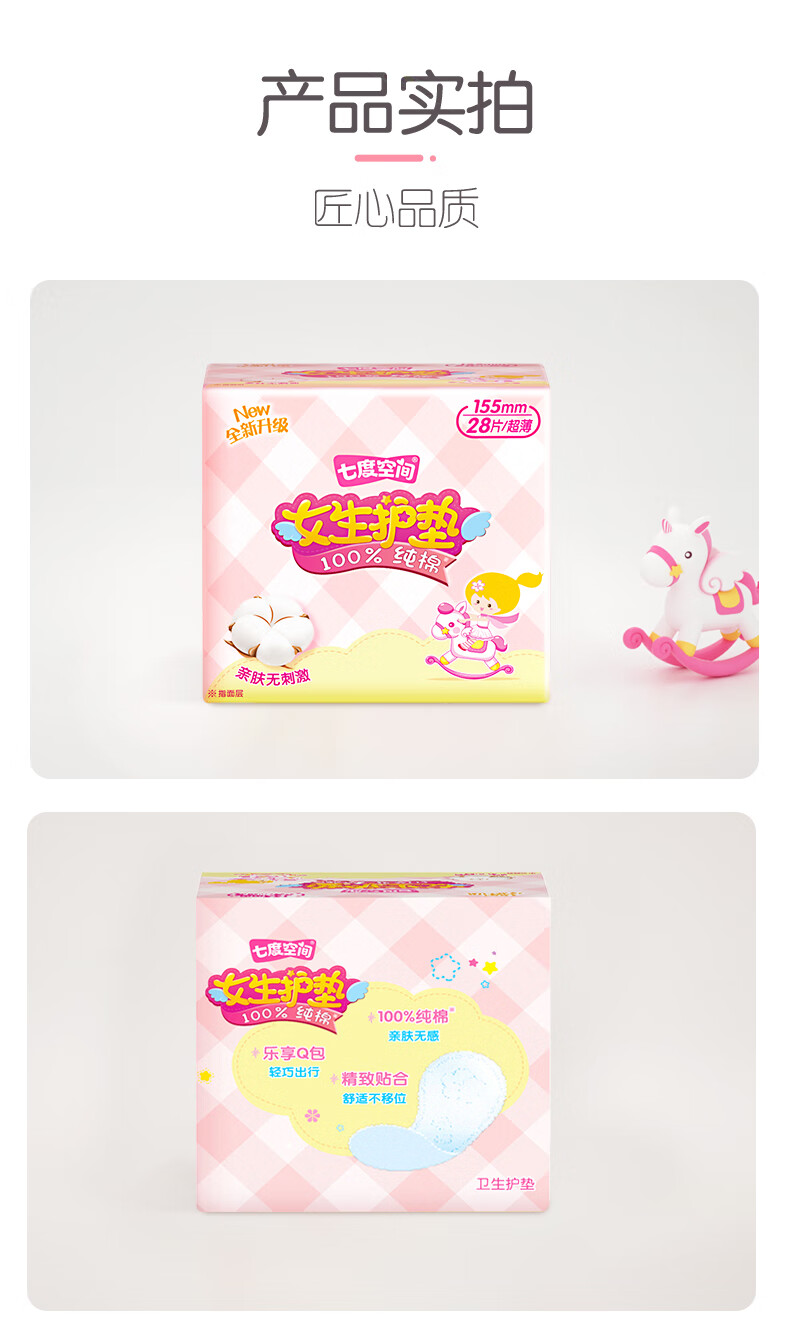 七度空间女生护垫纯棉表层敏感肌适用超薄乐Q包155mm*28片【新国标认证】