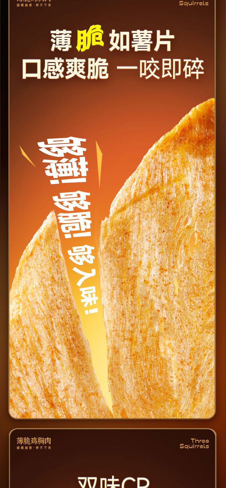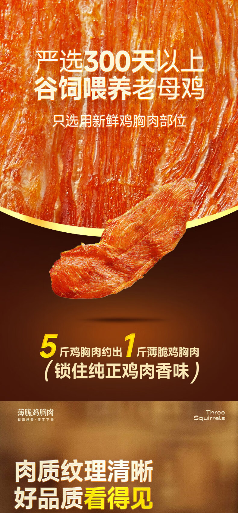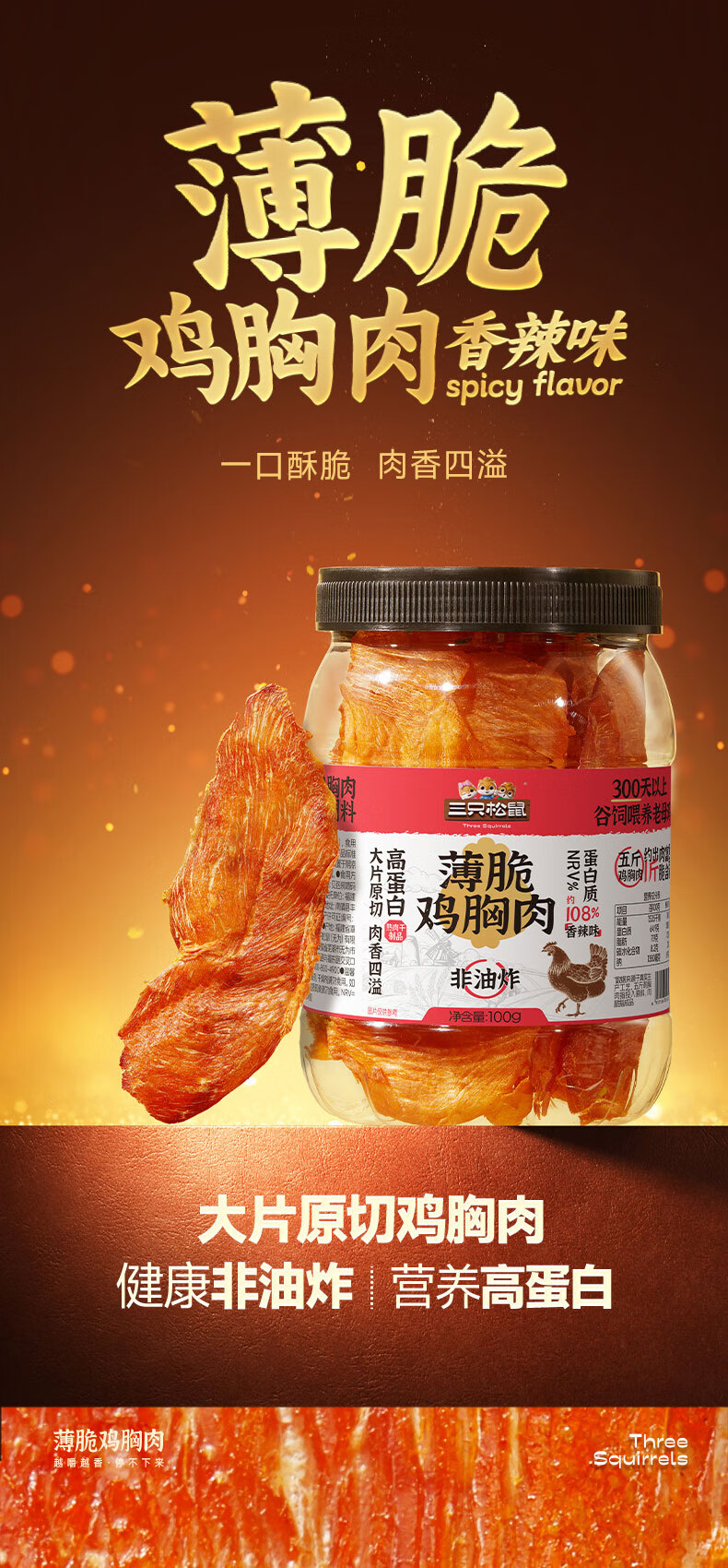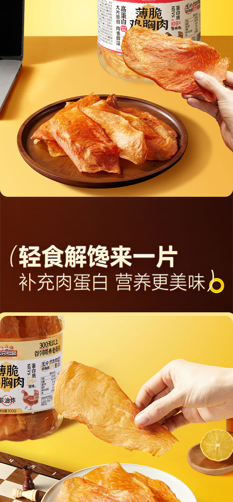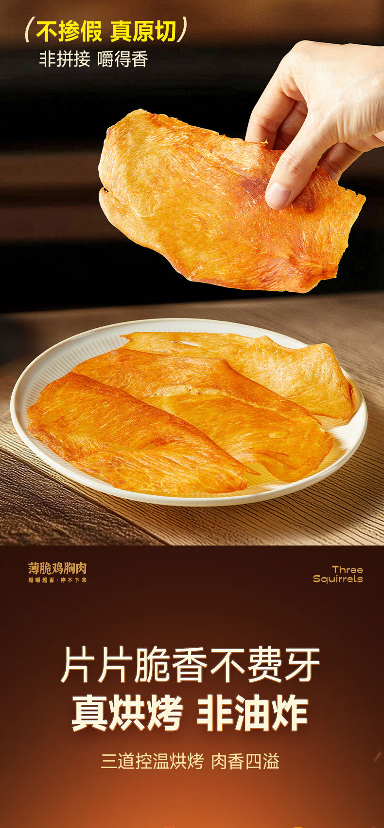 三只松鼠鸡胸肉薄脆100g 原味罐装解馋健身健康代餐饱腹肉干脆片原切零食