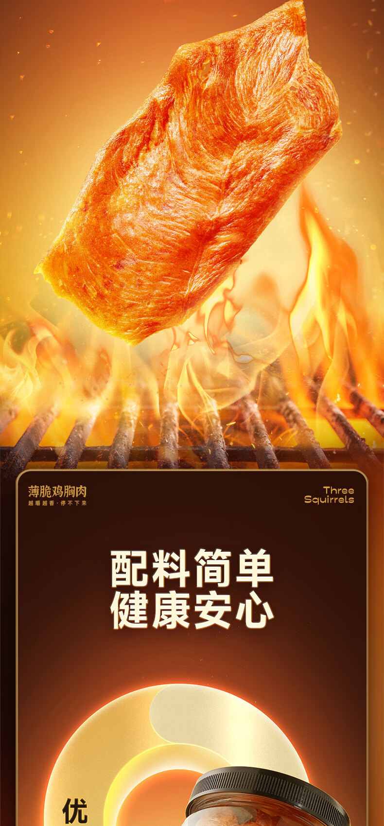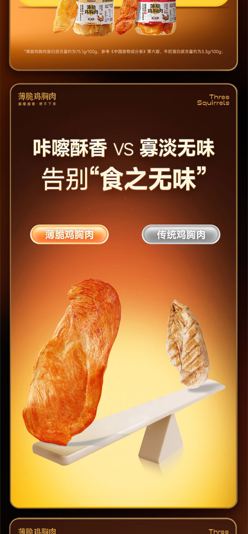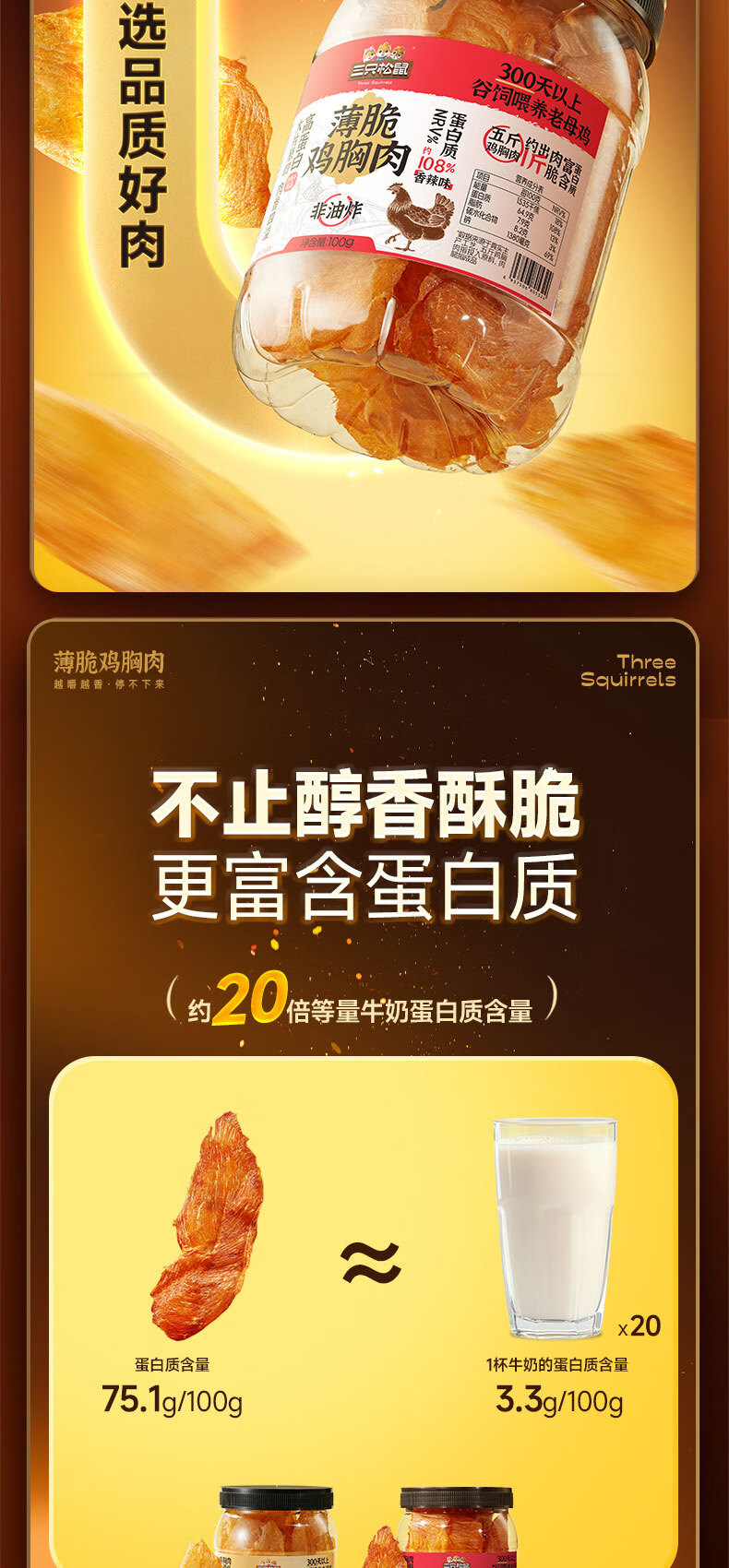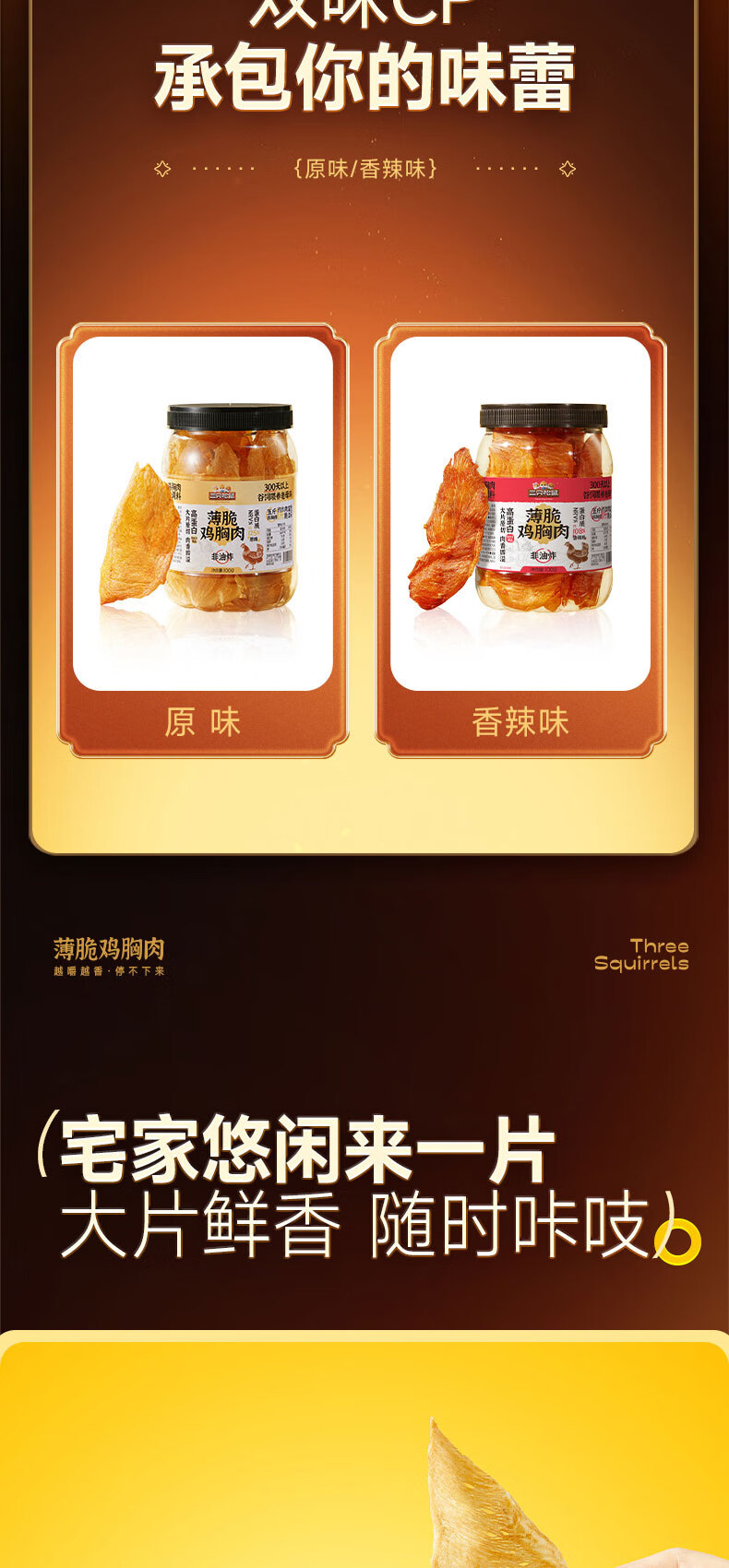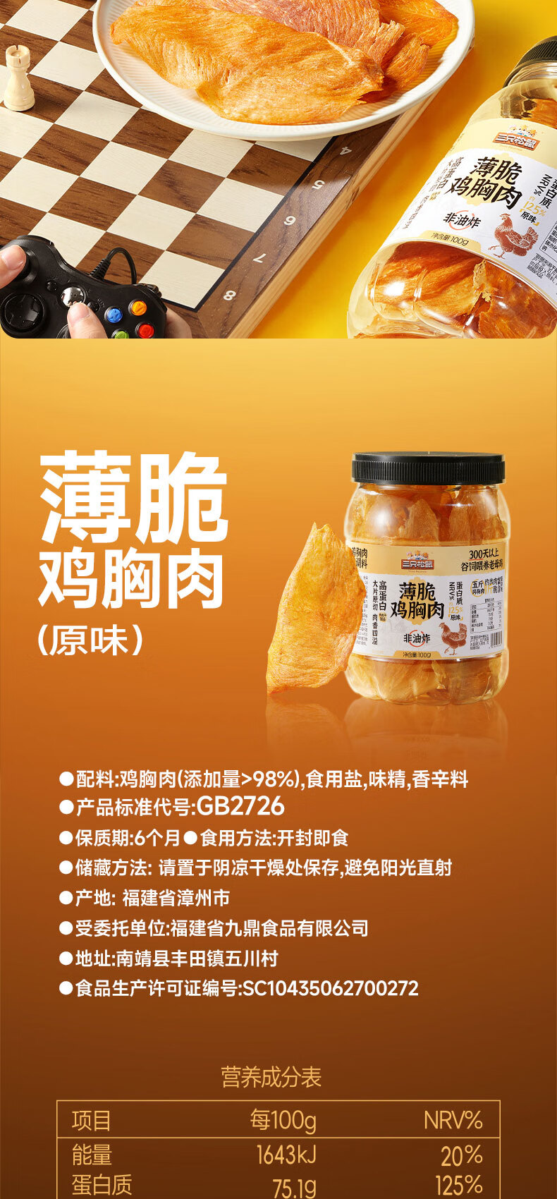 三只松鼠鸡胸肉薄脆100g 原味罐装解馋健身健康代餐饱腹肉干脆片原切零食