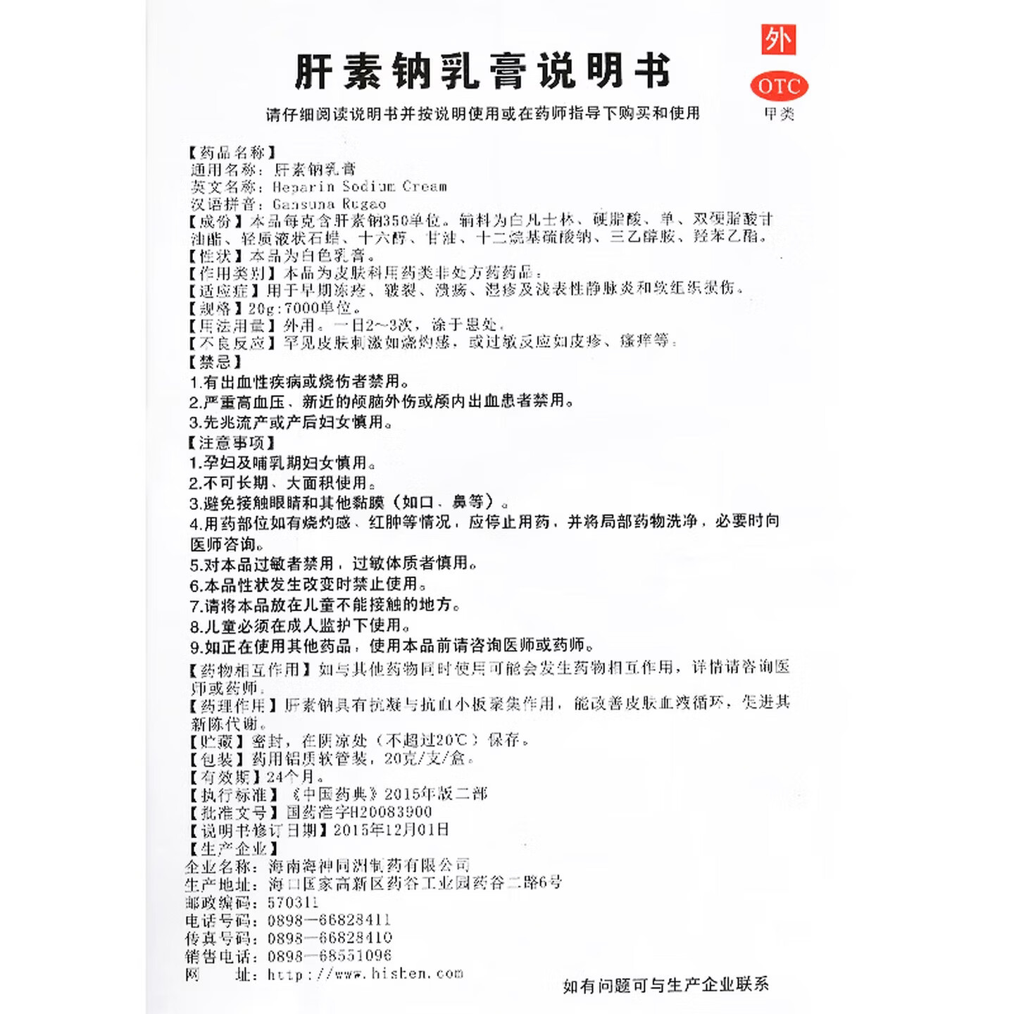 [舍邦]肝素钠乳膏 20g 1盒装 【有效期到26年6月】支用于早期冻疮皲裂溃疡湿疹及浅表性静脉炎和软组织损伤 26年6月过期