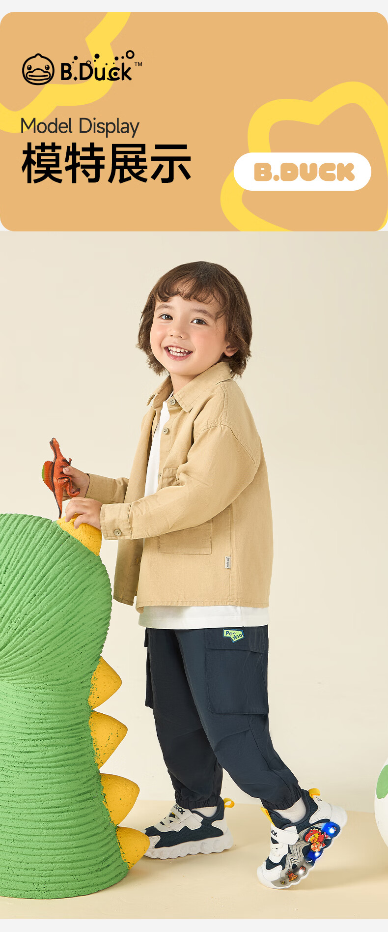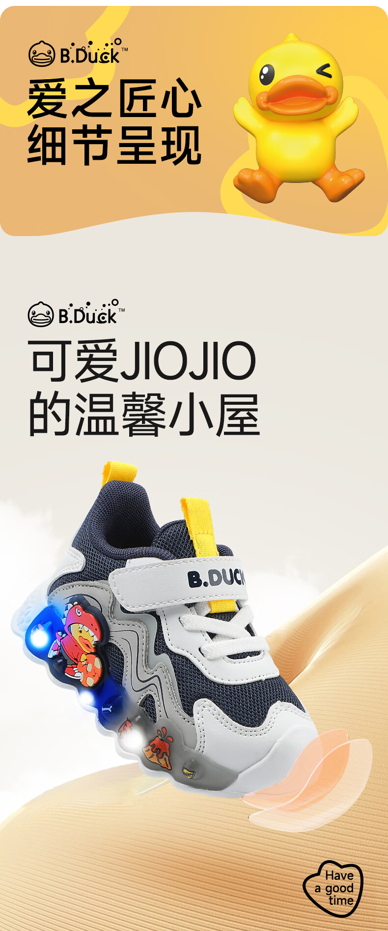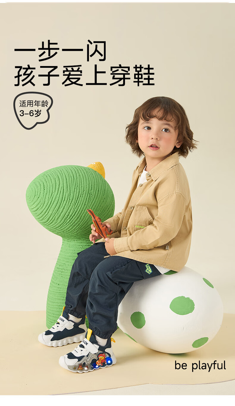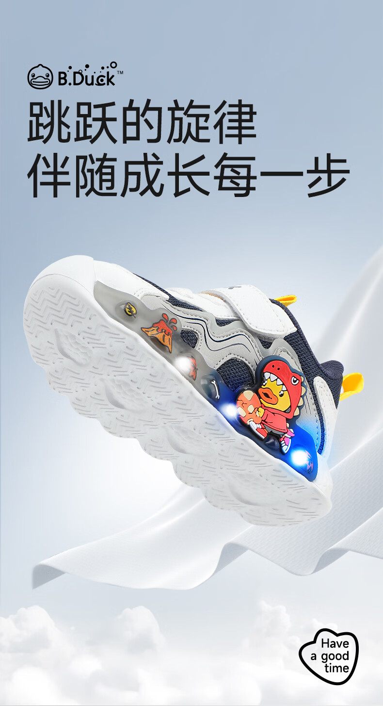 B.Duck小黄鸭童鞋男童春秋季新款亮灯儿童运动鞋女童网面透气灯鞋跑步鞋 黑米绿 22 码脚长12.7-13.2cm