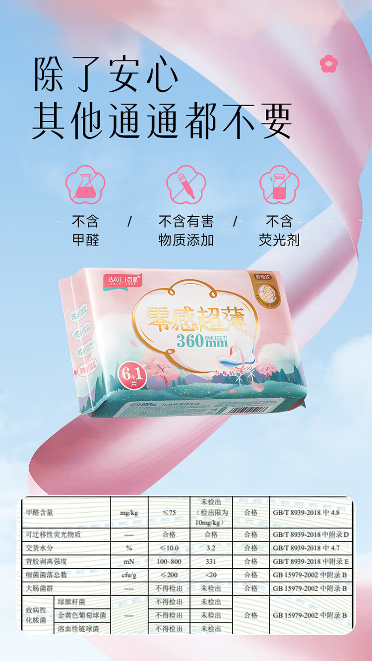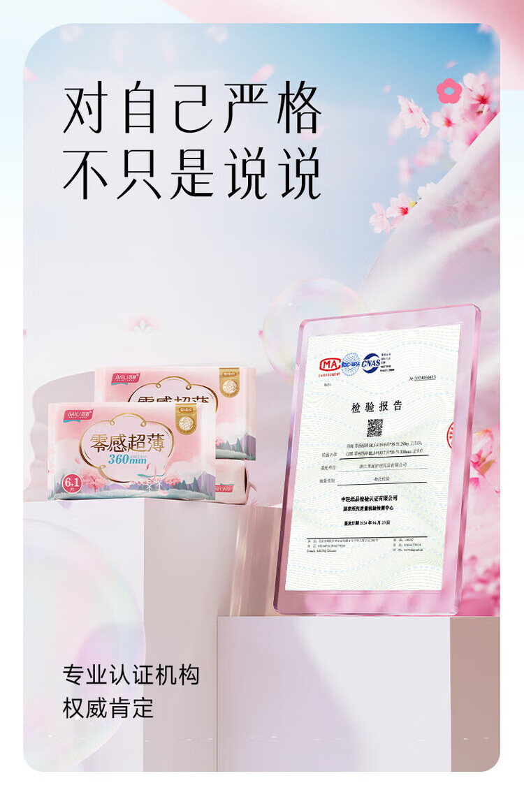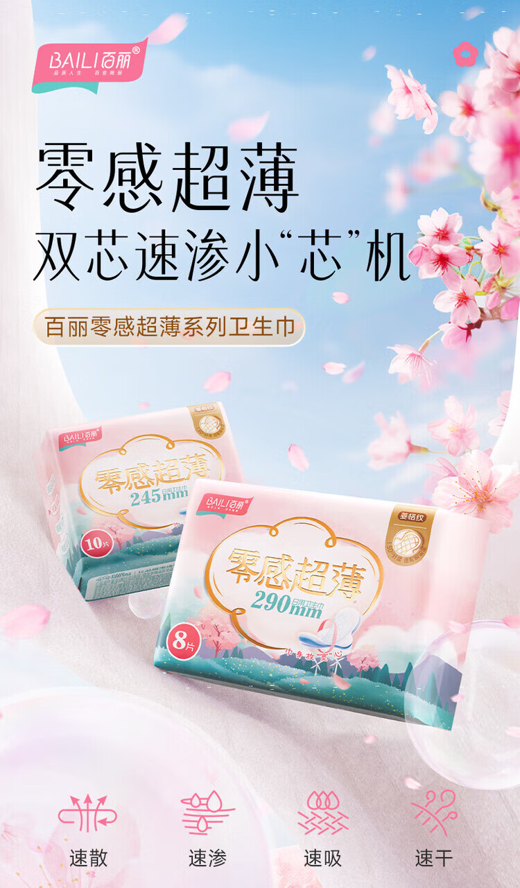 百丽(BaiLi)零感超薄卫生巾姨妈巾日用245/290/360mm量贩组合装 棉柔 245mm 20片 日用1包
