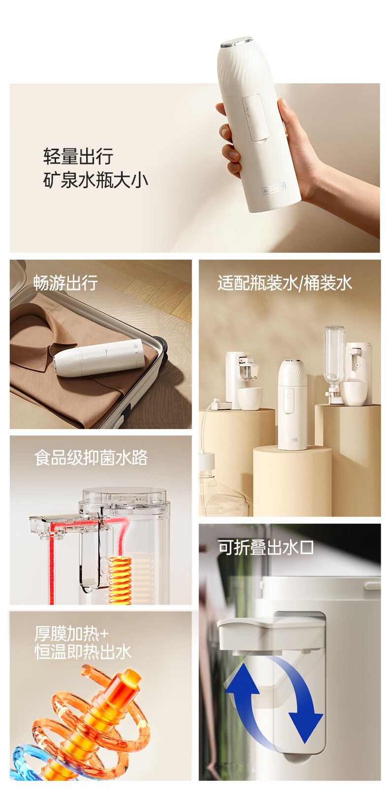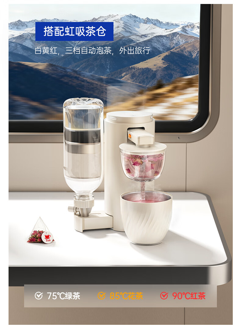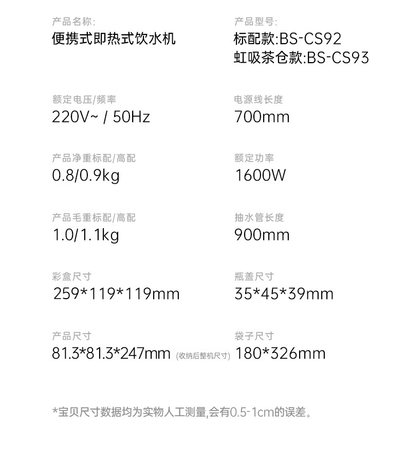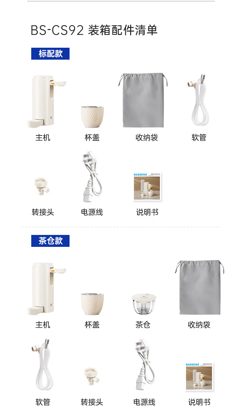 BASSENS巴森便携式即热饮水机小型家用宿舍酒店旅行免安装即热折叠桌面烧水壶冲奶泡奶速热电热水壶水杯 BS-CS92 【标配款无茶仓】 即热型