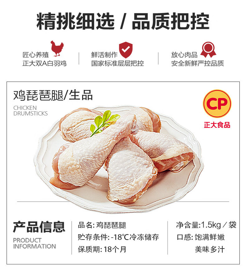 正大食品(CP)白羽鸡琵琶腿 净重3斤生鲜冷冻 蒸煮煎炸凉拌鸡肉白羽鸡