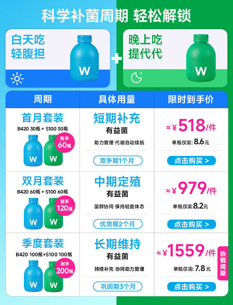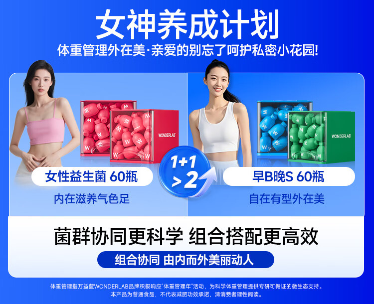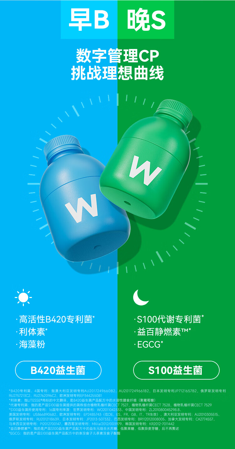 万益蓝WonderLab 早B晚S组合30瓶+30瓶 B420益生菌S100益生元棕色脂肪