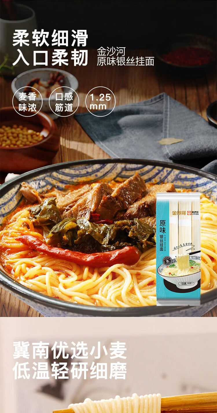 金沙河来伊份 挂面 面条 原味银丝挂面 龙须面 清汤面 900g*3袋