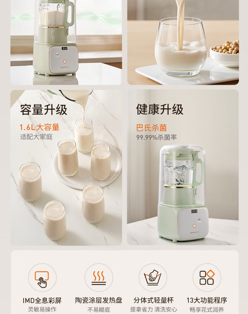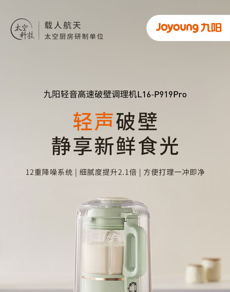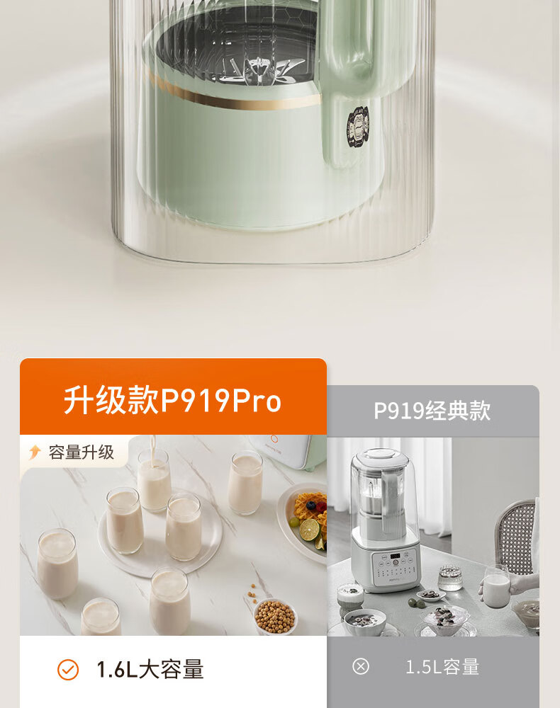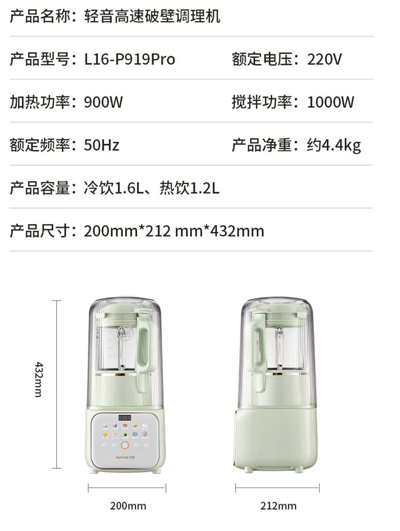 九阳破壁机全自动免煮家用自清洗豆浆机3-4人用大容量智能免洗五谷杂粮早餐机榨汁机料理机辅食搅拌机 升级版P919Pro 1.6L