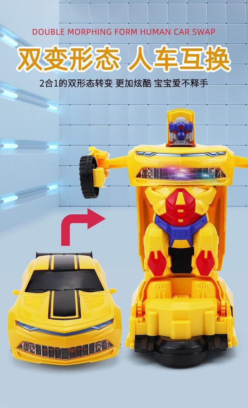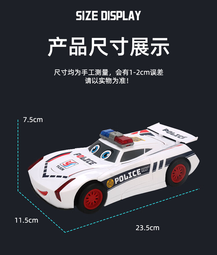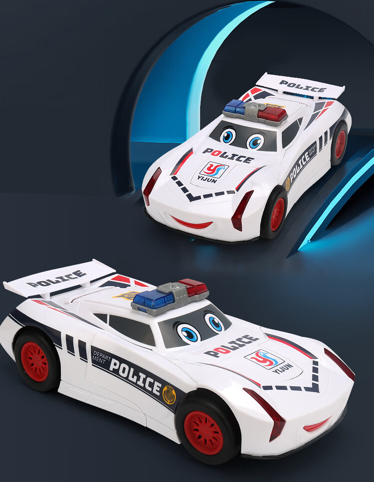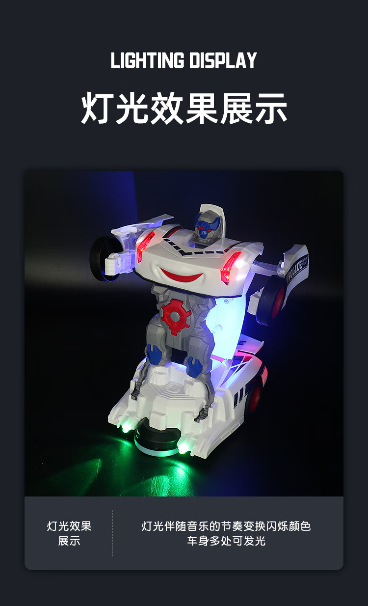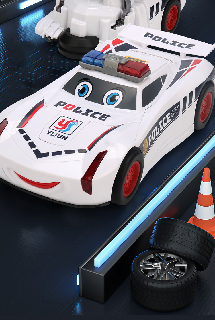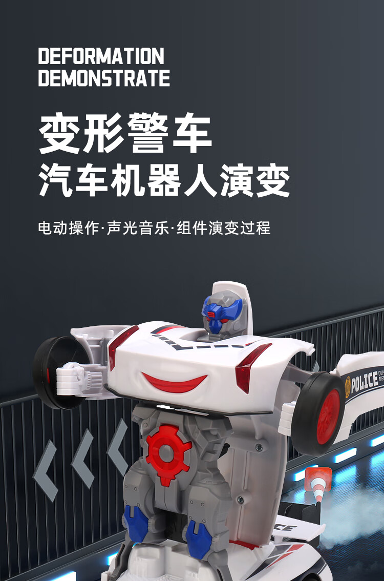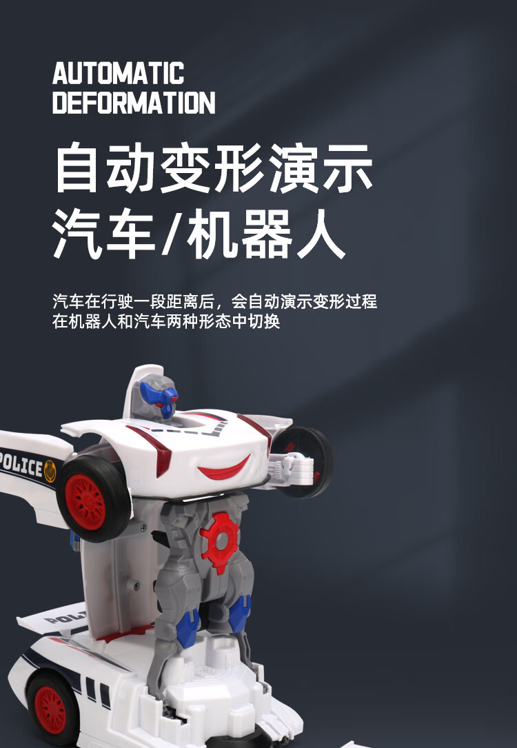 赟娅儿童电动变形赛车玩具警车万向灯光音乐机器人男孩模型六一儿童节 白色警车【灯光+音乐】