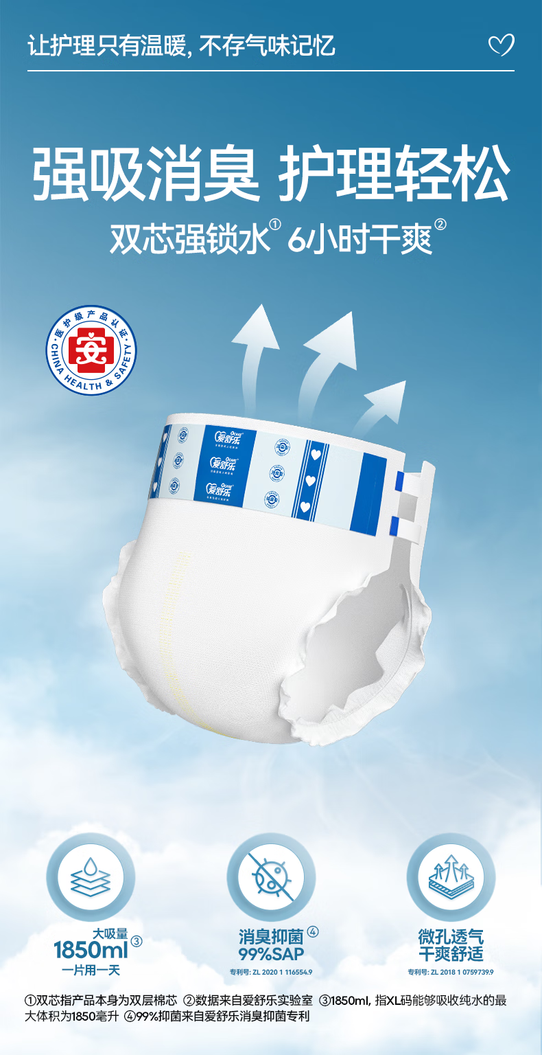 爱舒乐成人纸尿裤XL72片 消臭抑菌 粘贴式卧床老人孕产妇尿不湿强吸防漏