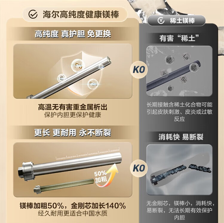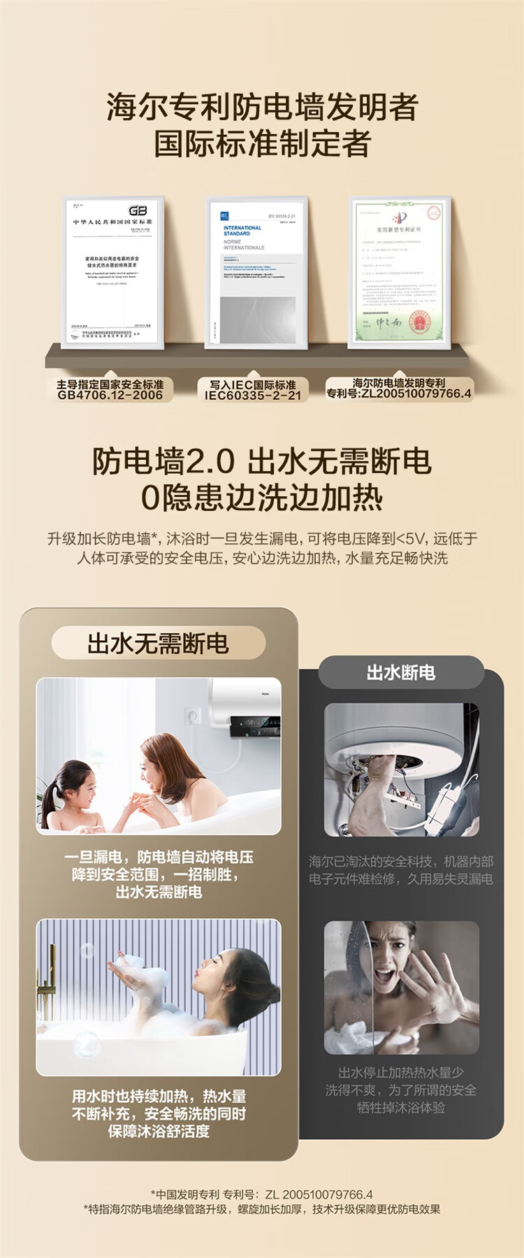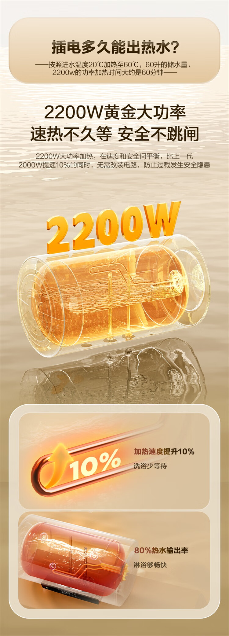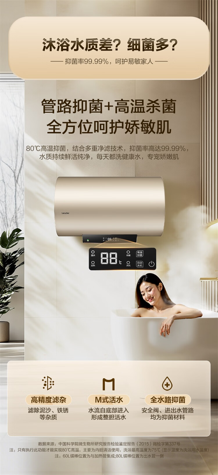 海尔出品统帅60升电热水器京东自营上门安装 国家补贴 2200W节能速热一级能效家用储水式LEC6001-LD5金
