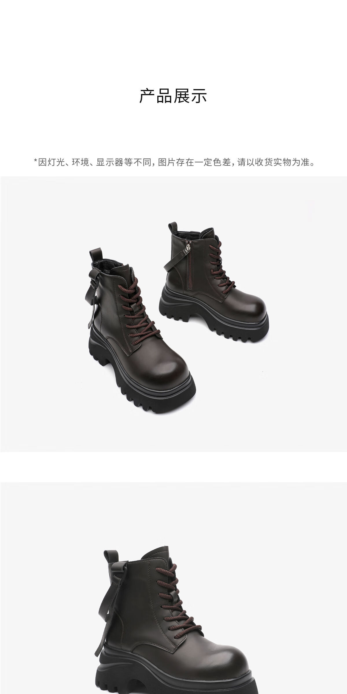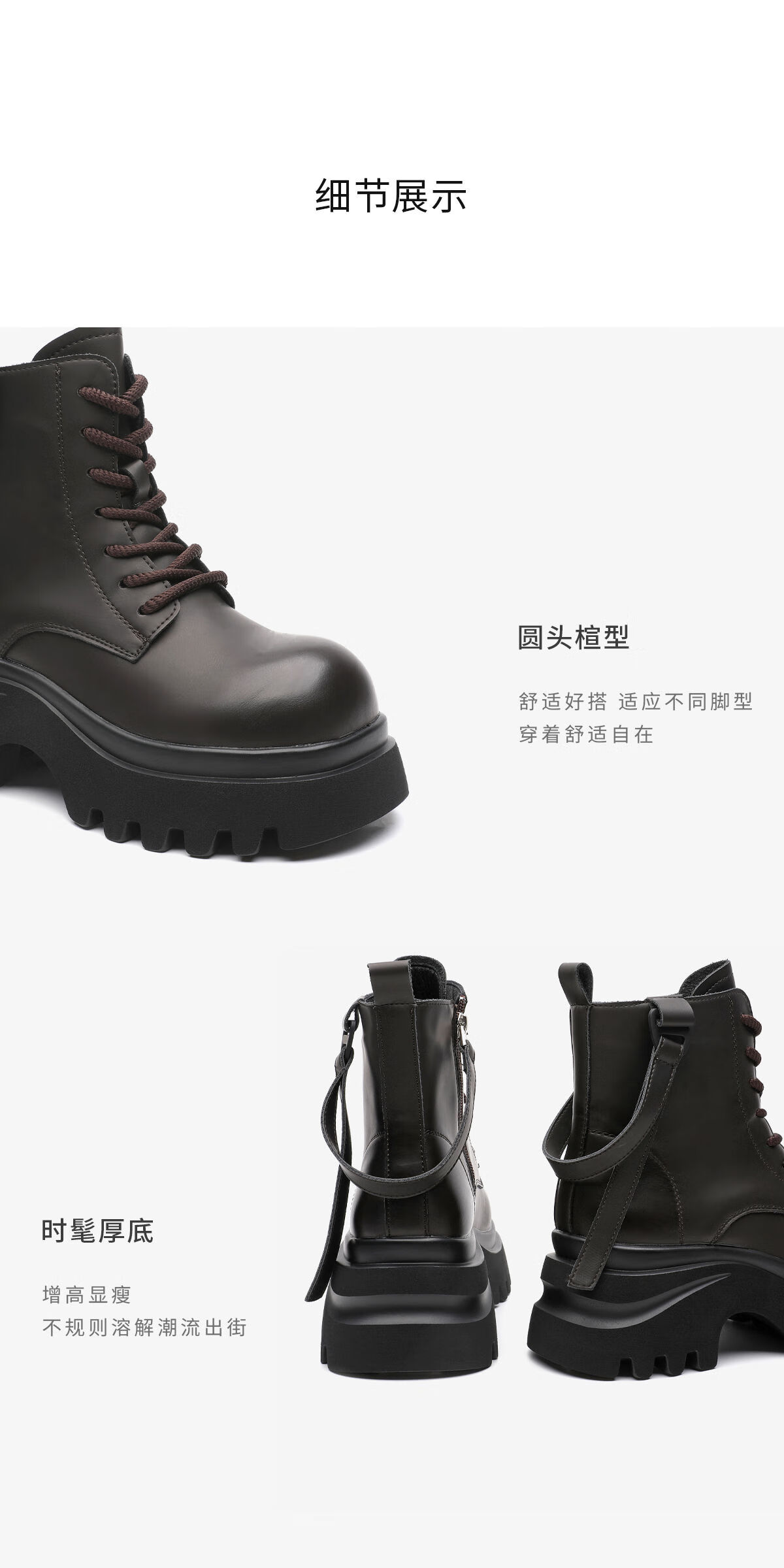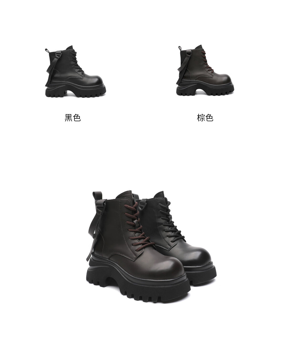 月芽儿短靴女2025年秋季季新款黑色百搭复古英伦风女靴增高马丁靴 绒里棕色03T 36