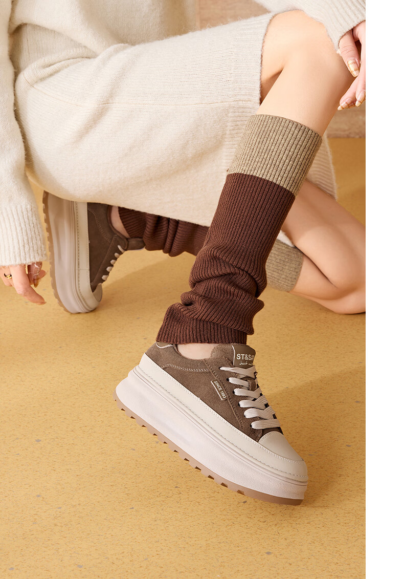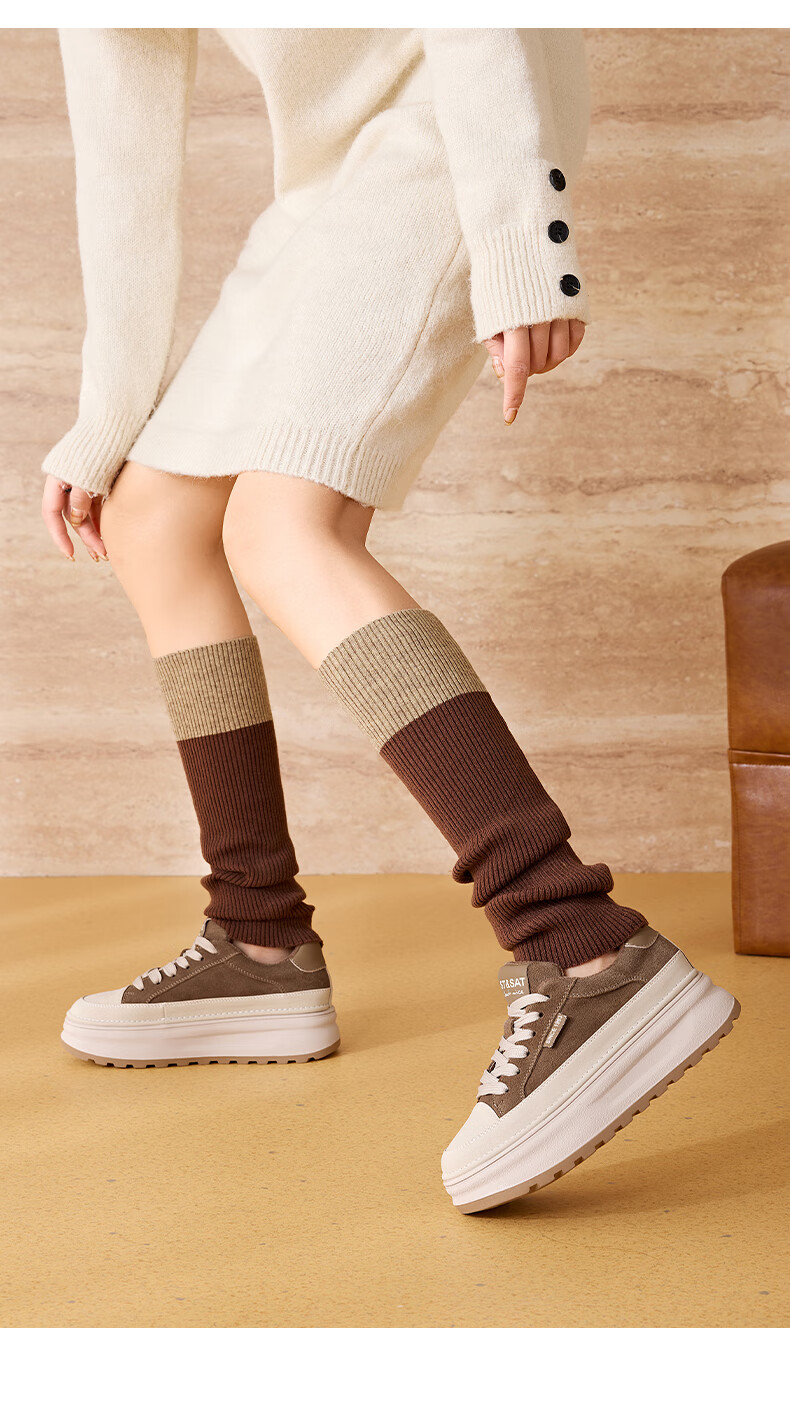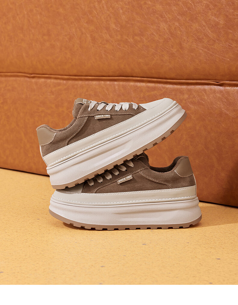 星期六厚底帆布鞋女款2025新款秋冬加绒女鞋老爹运动鞋子女松糕鞋 咖啡色 36