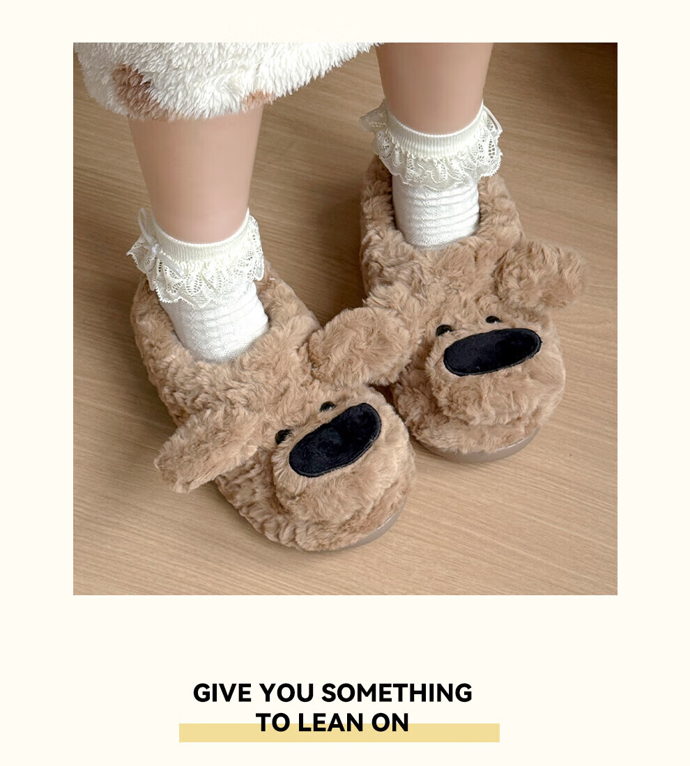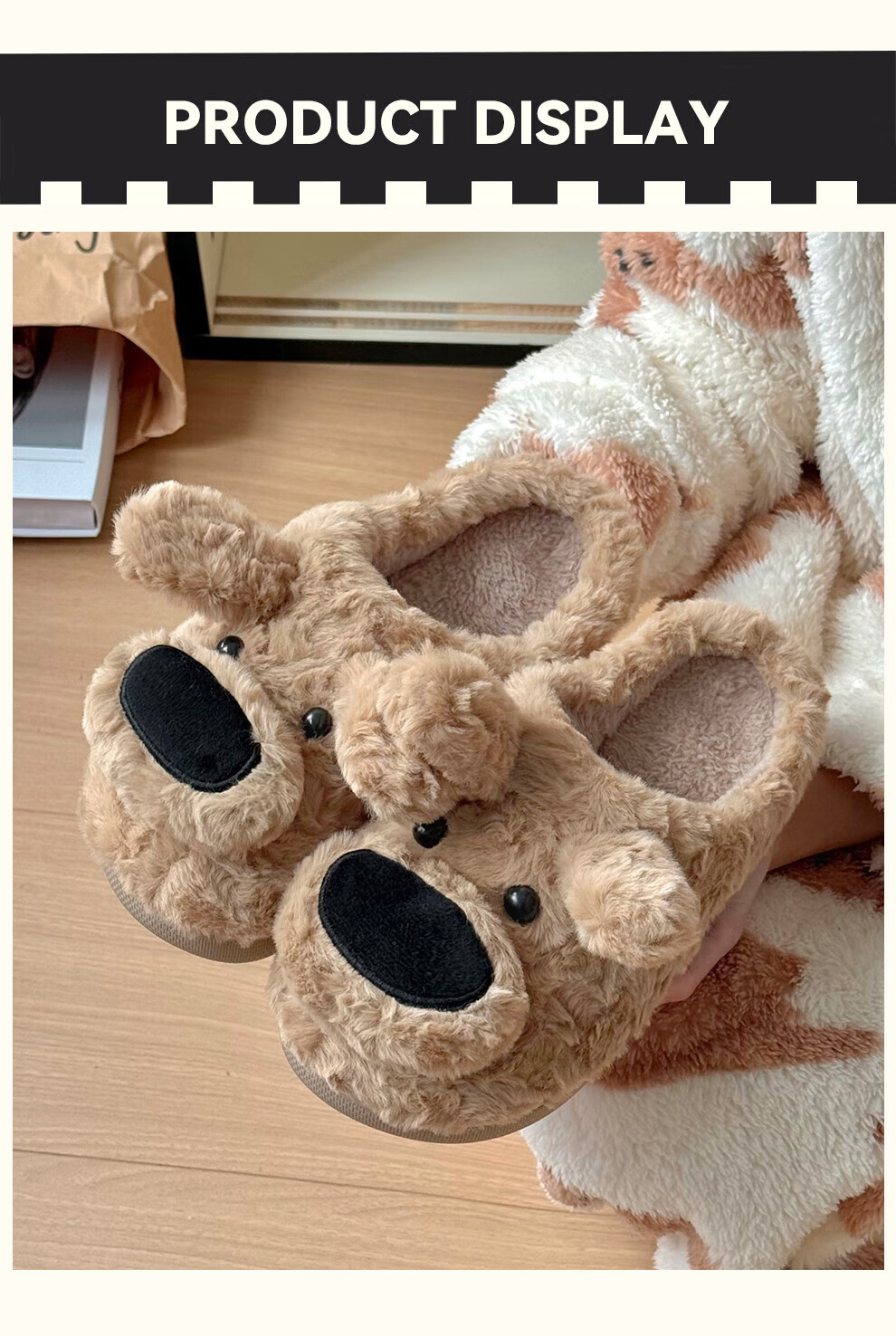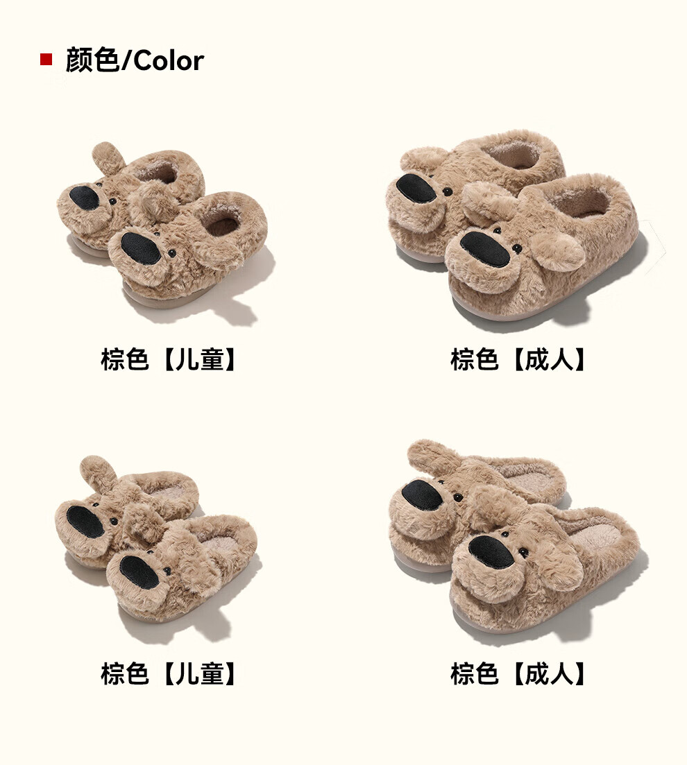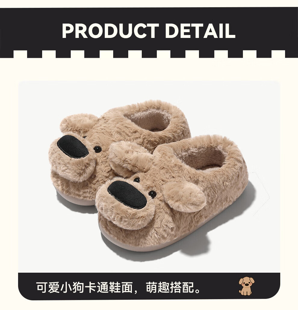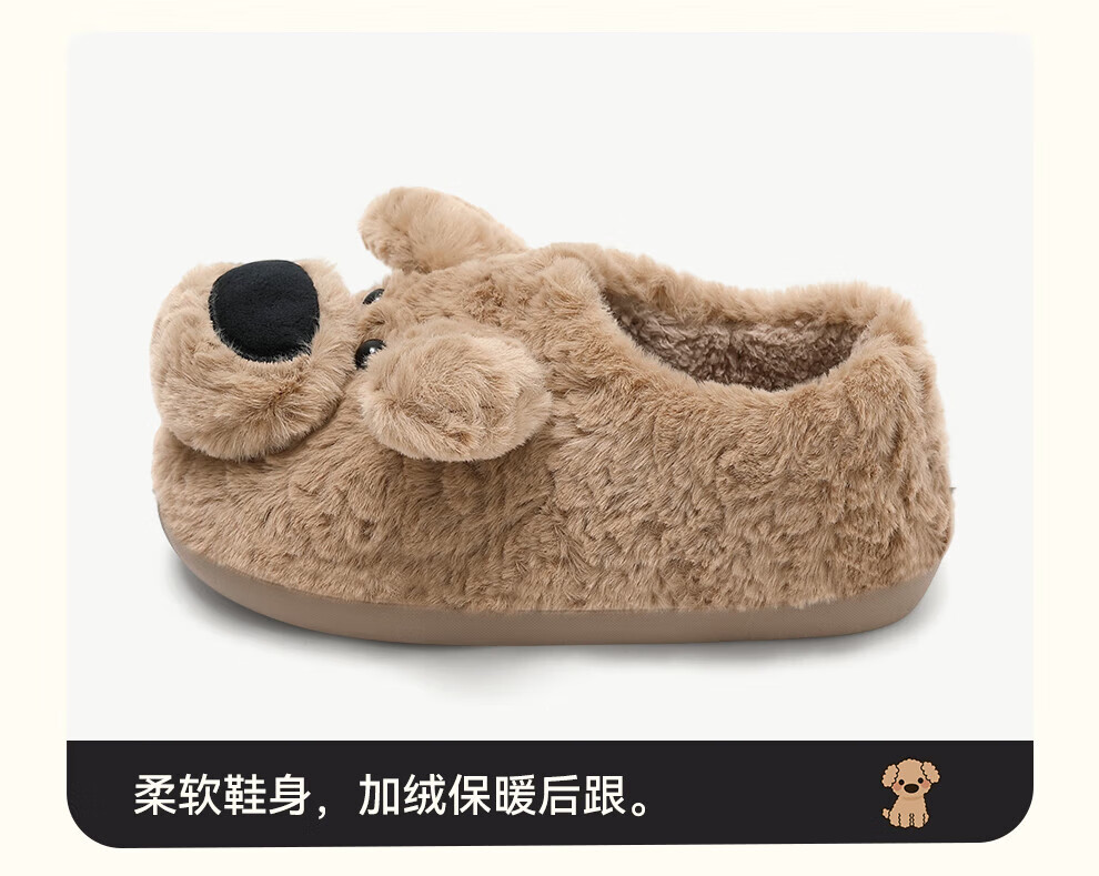FZT可爱大鼻狗棉拖鞋女2025新款冬季居家室内情侣防滑加绒保暖棉拖鞋 棕色【主图款】 36-37 正码
