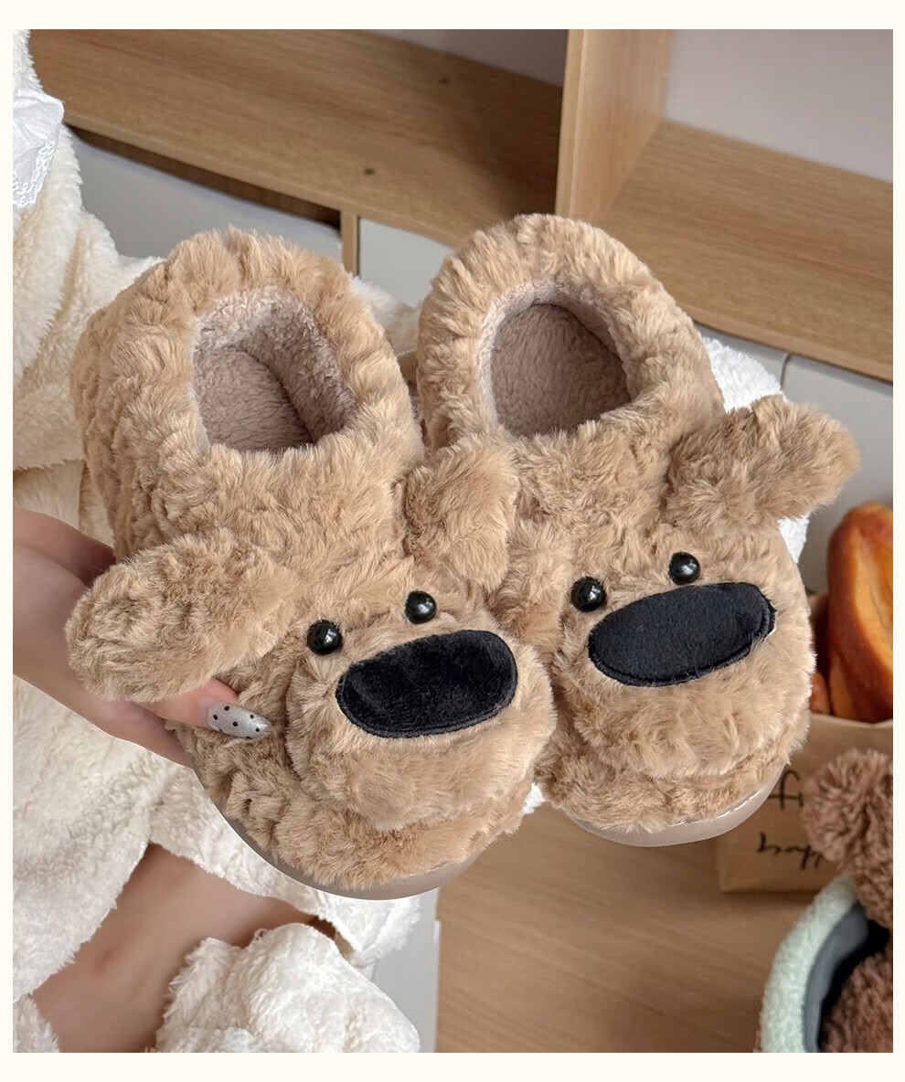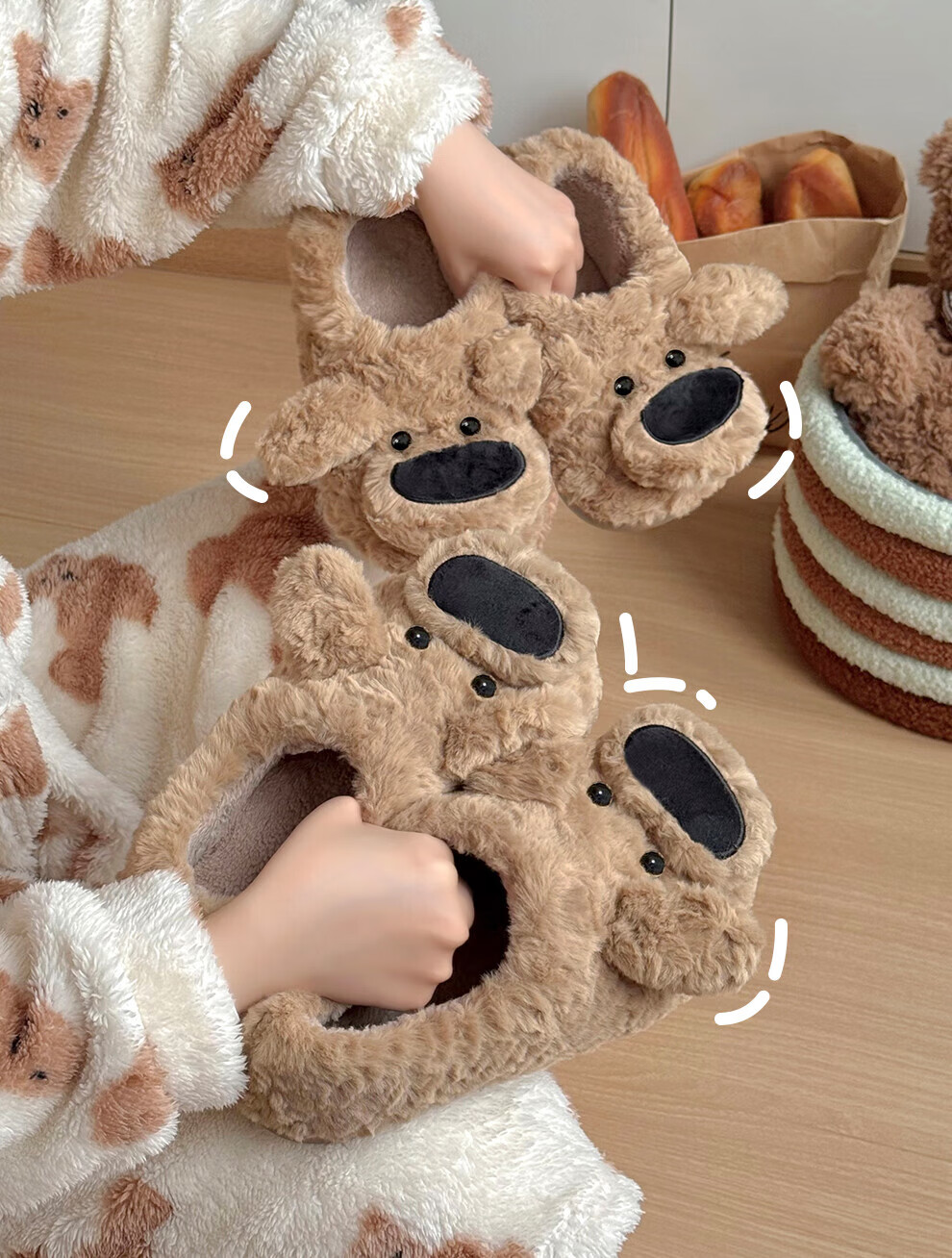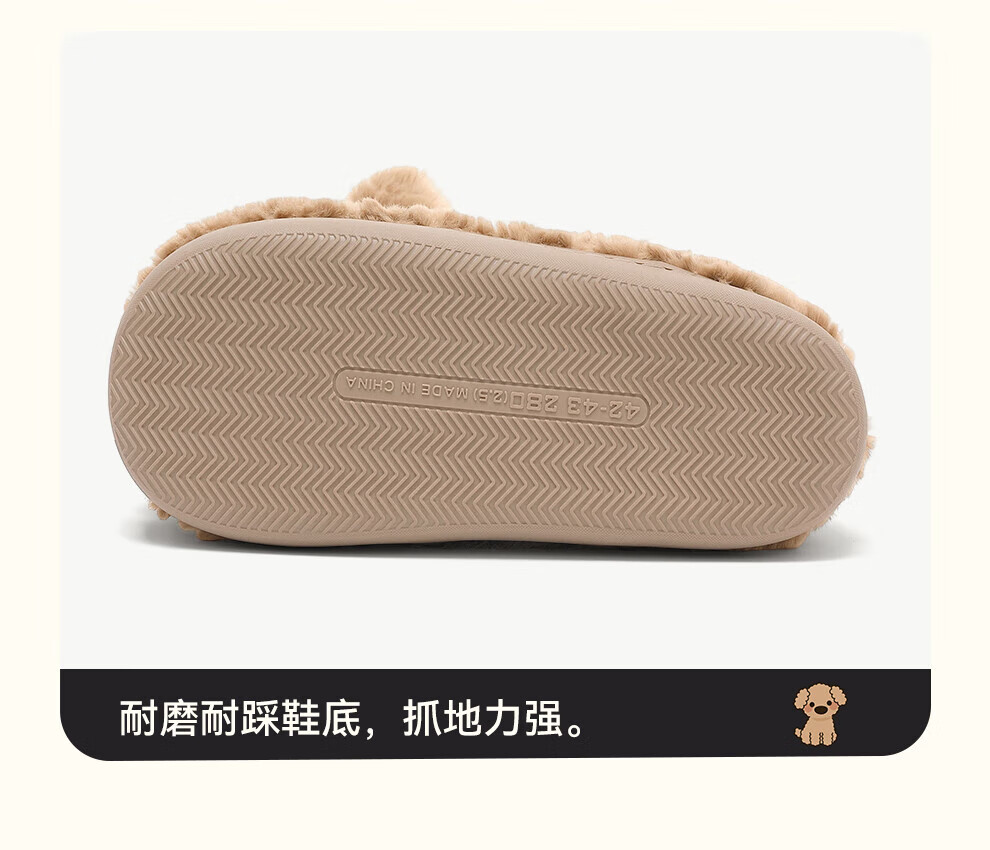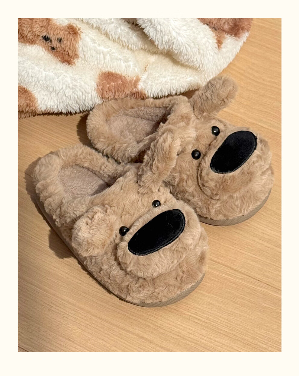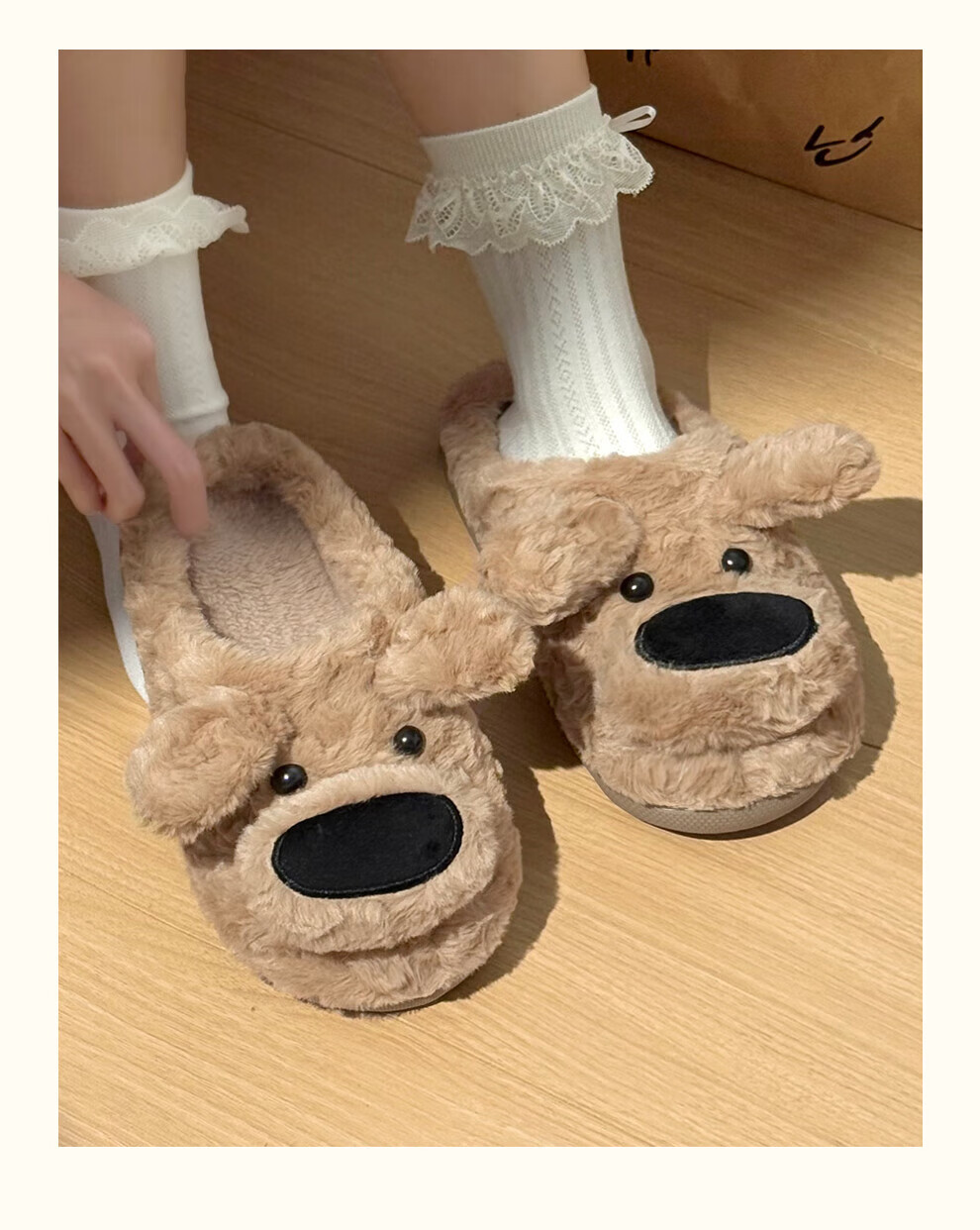 FZT可爱大鼻狗棉拖鞋女2025新款冬季居家室内情侣防滑加绒保暖棉拖鞋 棕色【主图款】 36-37 正码