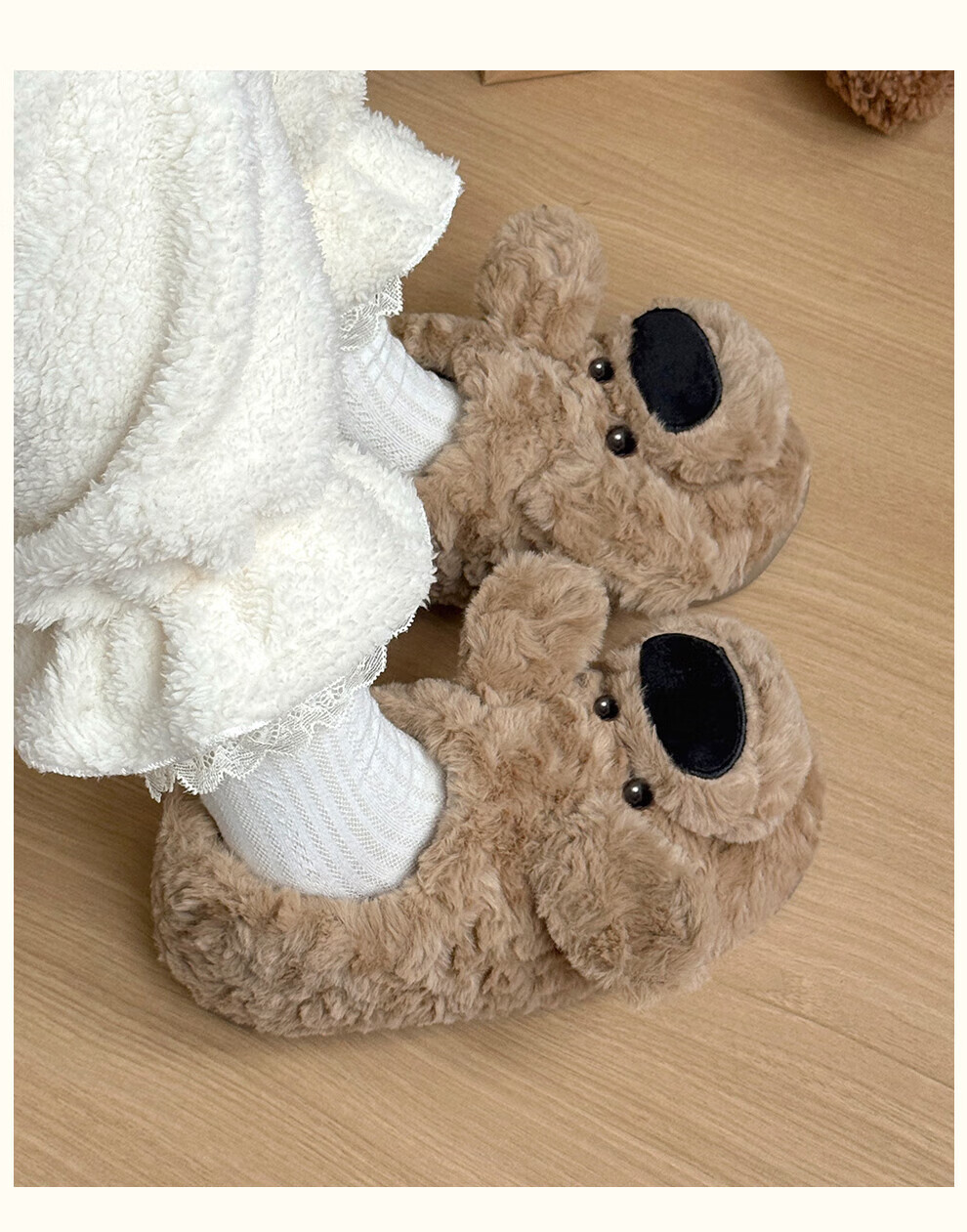 【福利价】小熊小兔棉拖秋冬季情侣保暖学生男拖鞋女居家棉拖鞋 小熊小兔棉拖-咖色 42-43 适合41-42