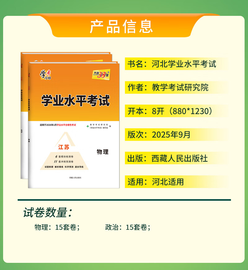 【河北专用】河北省高中学业水平考试适用于河北学考合格考模拟考试测试卷河北高中学业水平考试天利38套河北高中学业水平考试 物理(适用2025年12月合格考)